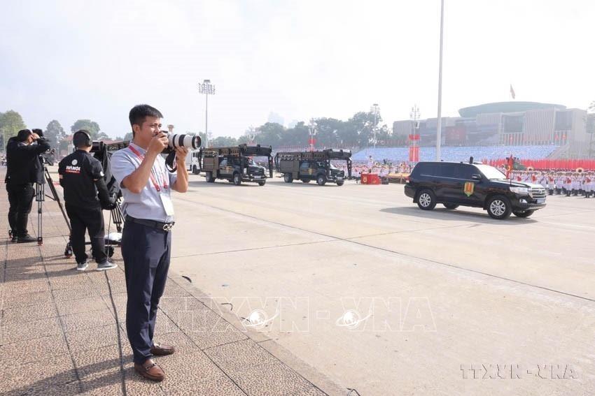 Phóng viên ảnh Lâm Khánh tác nghiệp tại Lễ kỷ niệm, diễu binh, diễu hành 80 năm Cách mạng tháng Tám thành công và Quốc khánh nước CHXHCN Việt Nam (2/9/1945 - 2/9/2025). Ảnh: TTXVN