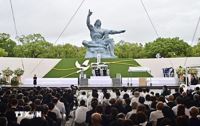 Lễ tưởng niệm năm nay tại thành phố Nagasaki có sự tham dự của đại diện 94 quốc gia và vùng lãnh thổ, trong đó bao gồm cả các nước sở hữu vũ khí hạt nhân như Mỹ, Nga và Anh. Tại buổi lễ, danh sách 3.167 người chết vì bom nguyên tử xác nhận trong năm vừa qua cũng được an vị tại “hộp tưởng niệm”, nâng tổng số ca tử vong liên quan thảm họa lên 201.942 người. Tính đến cuối tháng 3/2025, số người sống sót sau vụ ném bom nguyên tử còn lại trên toàn quốc là 99.130 người, với độ tuổi trung bình là 86,13. Buổi sáng 9/8 khi cử hành lễ kỷ niệm 80 năm ngày Mỹ ném bom nguyên tử xuống thành phố Nagasaki, trời đổ mưa lớn, nhưng nhiều người vẫn đến Công viên Hòa bình và tưởng niệm các nạn nhân trước bức tượng Hòa bình. Cùng thời điểm, tại Nhà thờ Công giáo Urakami, cách tâm nổ khoảng 500 mét về phía Đông Bắc của thành phố Nagasaki, từ 6 giờ sáng đã diễn ra Thánh lễ cầu siêu./.