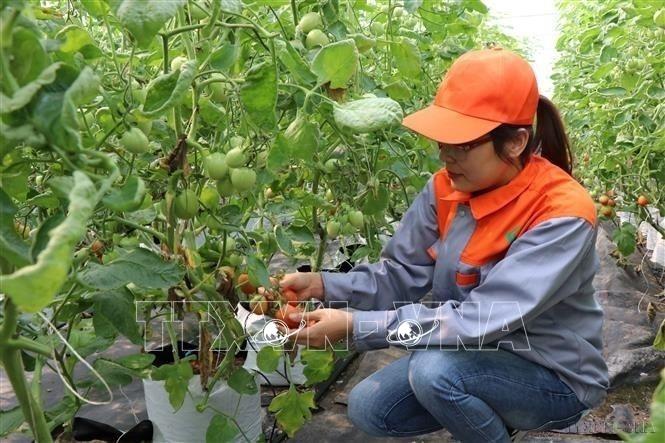 Đoàn viên Nguyễn Thị Trâm, huyện Lương Tài, tỉnh Bắc Ninh với mô hình khởi nghiệp trồng rau theo hướng VietGap, cho lợi nhuận hơn 1 tỷ đồng/năm. Ảnh: Thanh Thương – TTXVN