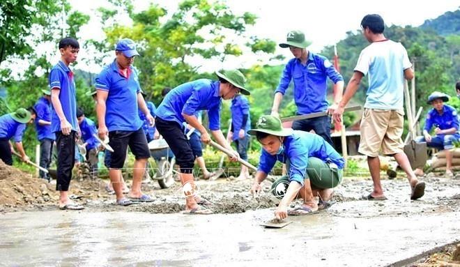 Đội thanh niên tình nguyện Đại học Huế tham gia làm đường giao thông nông thôn trong chiến dịch Thanh niên tình nguyện Hè 2018. Ảnh: Tường Vi – TTXVN