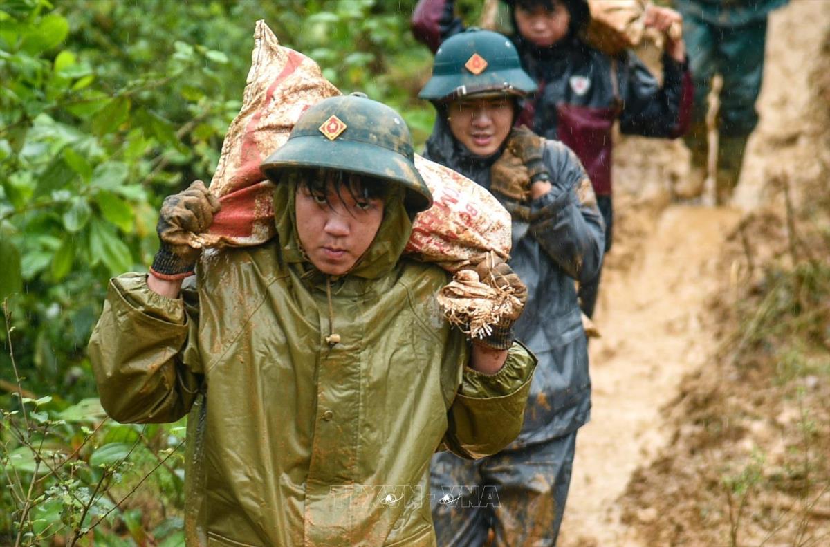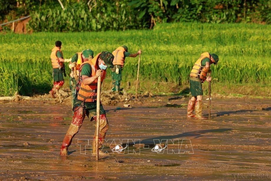 Lực lượng quân đội tìm kiếm các nạn nhân mất tích do sạt lở đất tại làng Nủ, xã Phúc Khánh, huyện Bảo Yên (Lào Cai, 12/9/2024). Ảnh: Dương Giang-TTXVN