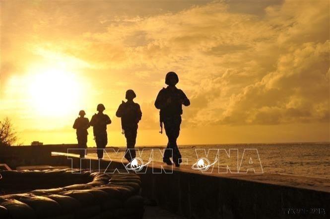 Các chiến sĩ trẻ đảo Phan Vinh, huyện đảo Trường Sa, tỉnh Khánh Hòa tuần tra canh gác giữ vững chủ quyền, vùng biển vùng trời của Tổ quốc. Ảnh: Minh Đức – TTXVN