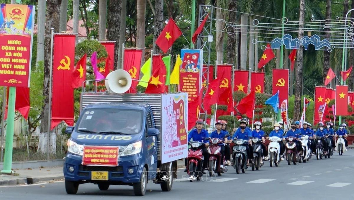 Đoàn viên, thanh niên phường Bình Phước, tỉnh Đồng Nai trở thành những “cánh tay nối dài” đưa thông tin về ngày hội bầu cử đại biểu Quốc hội khóa XVI và đại biểu Hội đồng nhân dân các cấp nhiệm kỳ 2026-2031 đến người dân (3/2026). Ảnh: Nhật Bình – TTXVN