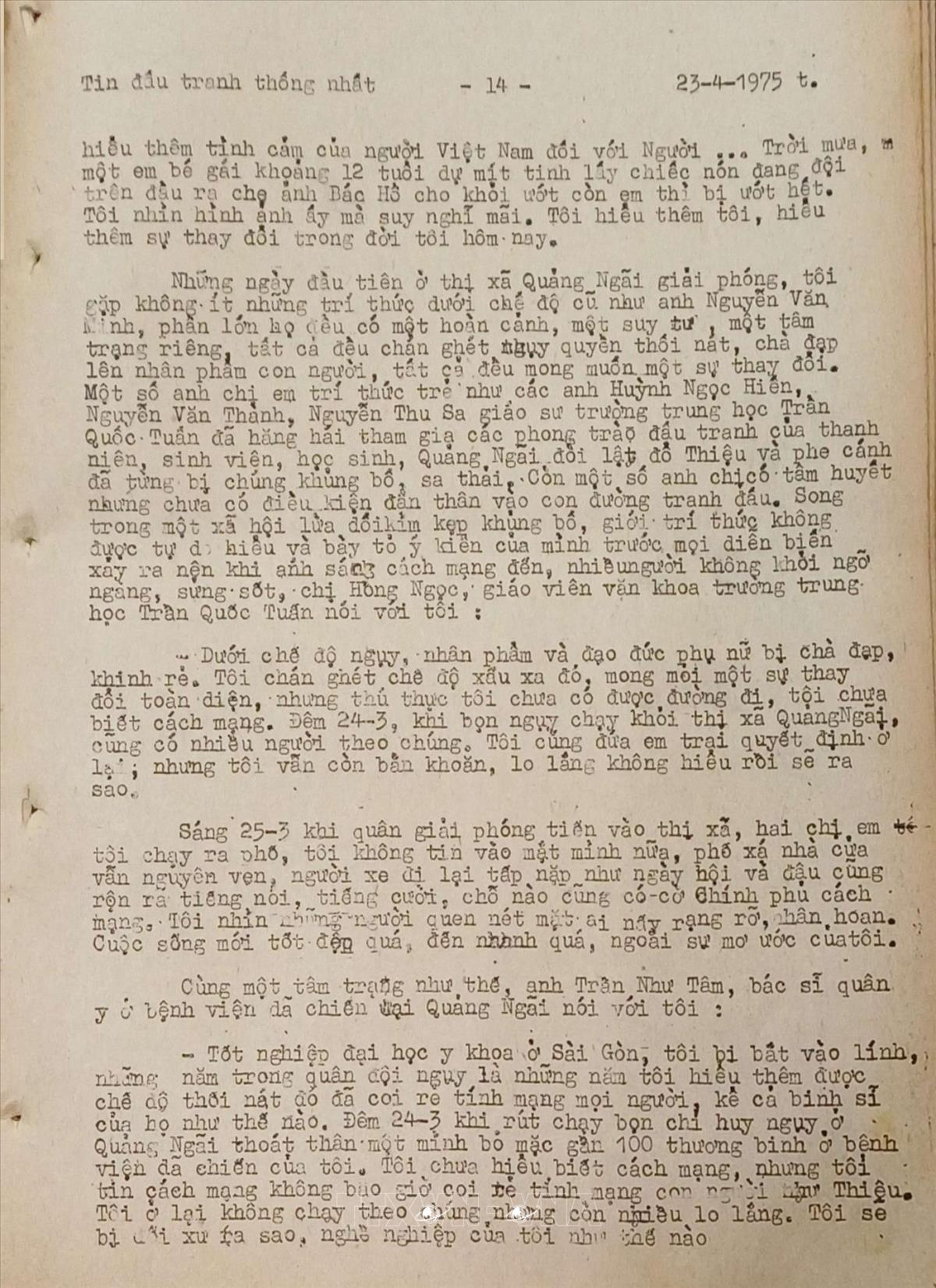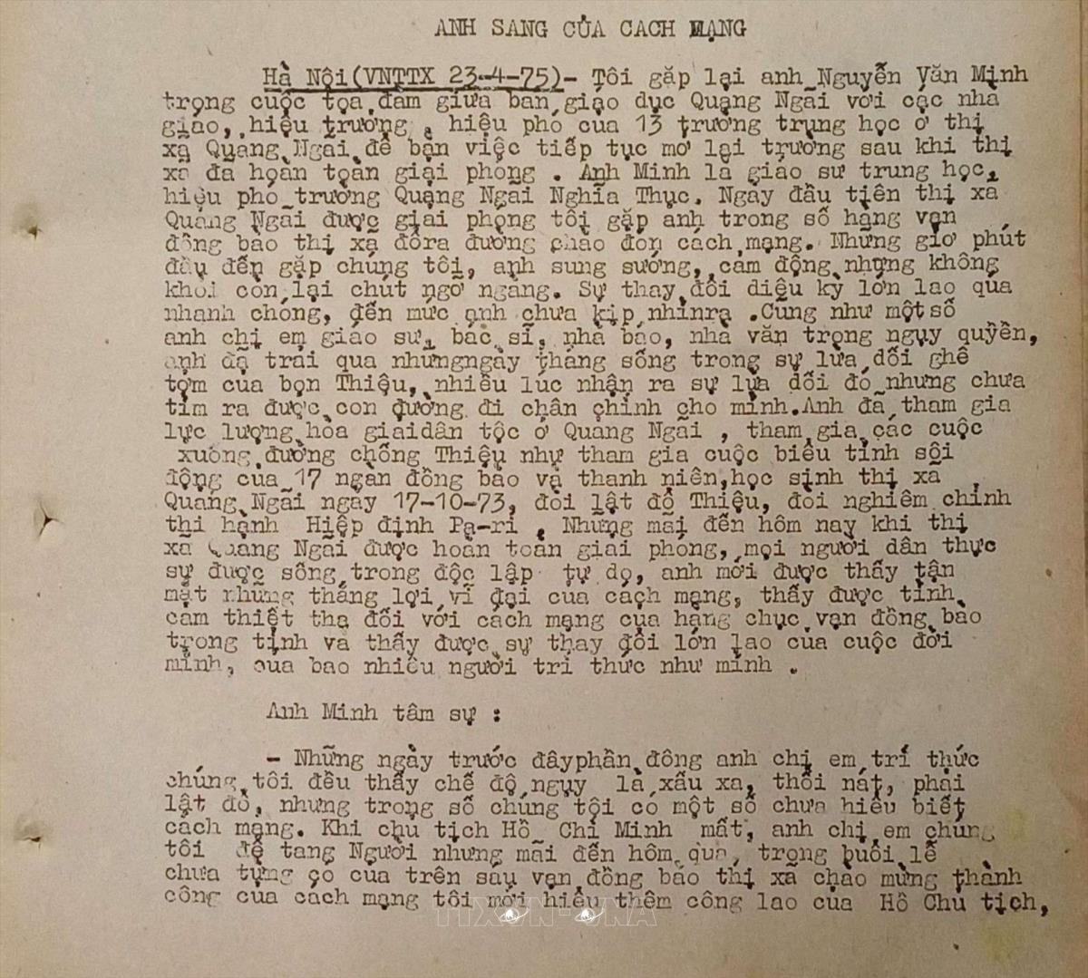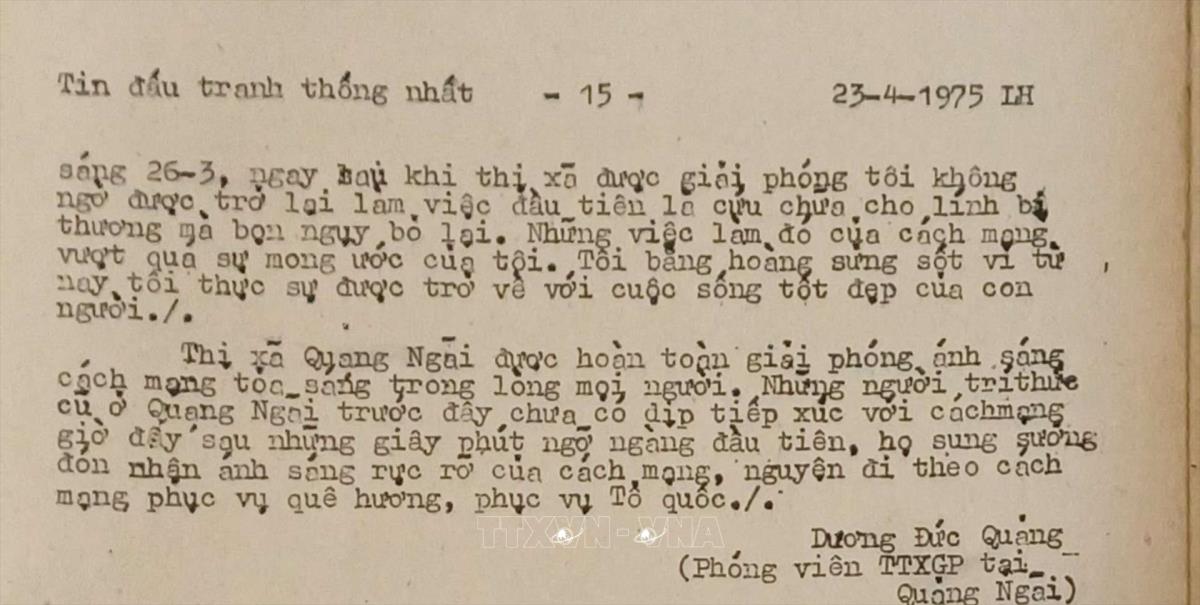 Ánh sáng của cách mạng Tin đấu tranh thống nhất của Việt Nam Thông tấn xã, ngày 23/4/1975 Từ khóa:Giải phóng miền Namthống nhất đất nướcThông tấn xã Giải phóngQuảng Ngãi