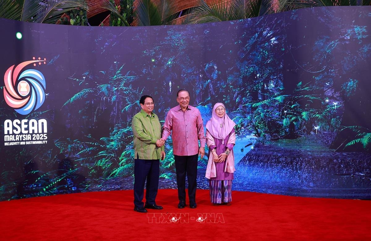Nhân chuyến tham dự Hội nghị Cấp cao ASEAN lần thứ 47 và các Hội nghị Cấp cao liên quan tại Kuala Lumpur (Malaysia), tối 27/10/2025, Thủ tướng Phạm Minh Chính và các Trưởng đoàn tham dự tiệc chiêu đãi chào mừng của Thủ tướng Malaysia Anwar Ibrahim, Chủ tịch ASEAN 2025 và Phu nhân.