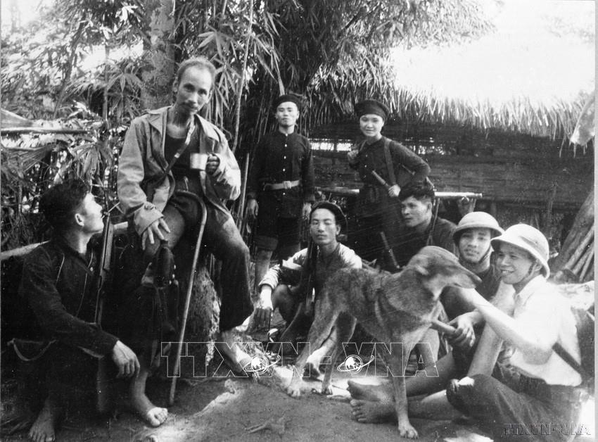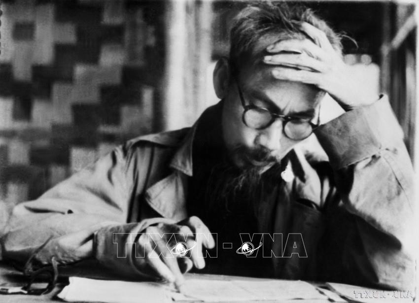 Chủ tịch Hồ Chí Minh làm việc tại Việt Bắc trong thời kỳ kháng chiến chống thực dân Pháp. Ảnh: TTXVN