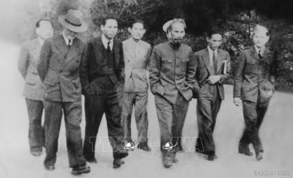 Chủ tịch Hồ Chí Minh và phái đoàn Việt Nam dự hội nghị Fontainebleau (Pháp) năm 1946. Ảnh: TTXVN