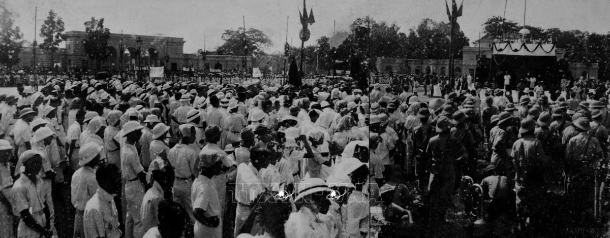 Nhân dân tập trung tại Quảng trường Ba Đình nghe Chủ tịch Hồ Chí Minh đọc Tuyên ngôn Độc lập, sáng 2/9/1945. Ảnh: Tư liệu TTXVN