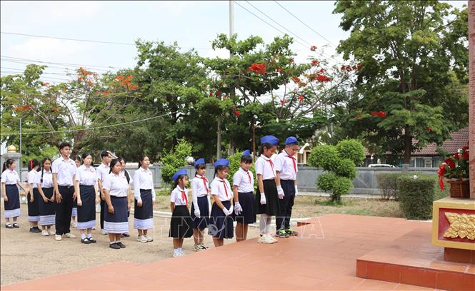 Chia sẻ với phóng viên TTXVN tại Lào, chị Nguyễn Thanh Hồng, giáo viên dạy môn tiếng Việt, trường Phổ thông Hữu nghị Lào - Việt Nam tỉnh Savannakhet, cho biết để ghi nhớ công ơn và tỏ lòng thành kính, biết ơn đến Chủ tịch Hồ Chí Minh đã cống hiến cả trí tuệ, sức lực và nỗ lực không biết mệt mỏi trong sự nghiệp cách mạng của hai dân tộc Việt Nam - Lào, ngoài những buổi học chính khóa ở trên lớp, vào mỗi dịp trọng đại của đất nước như ngày sinh Bác Hồ 19/5, ngày Quốc khánh 2/9… nhà trường đều tổ chức các hoạt động ngoại khóa để đưa học sinh đi dâng hoa, dâng hương tại một số khu di tích lịch sử trên địa bàn thành phố Kaysone Phomvihane, tỉnh Savannakhet.