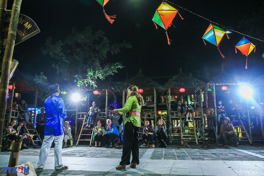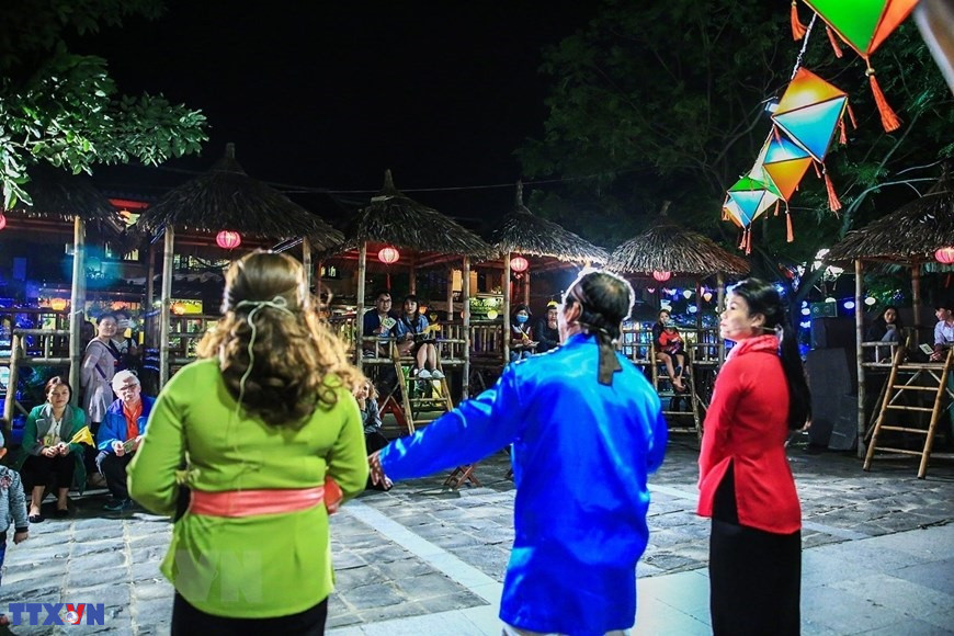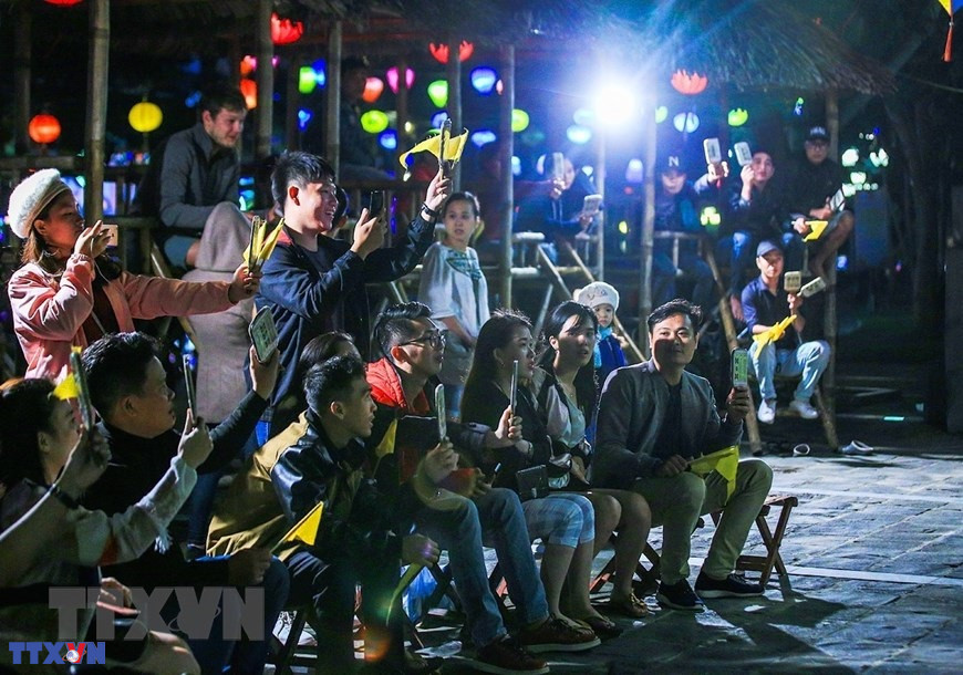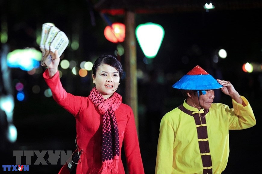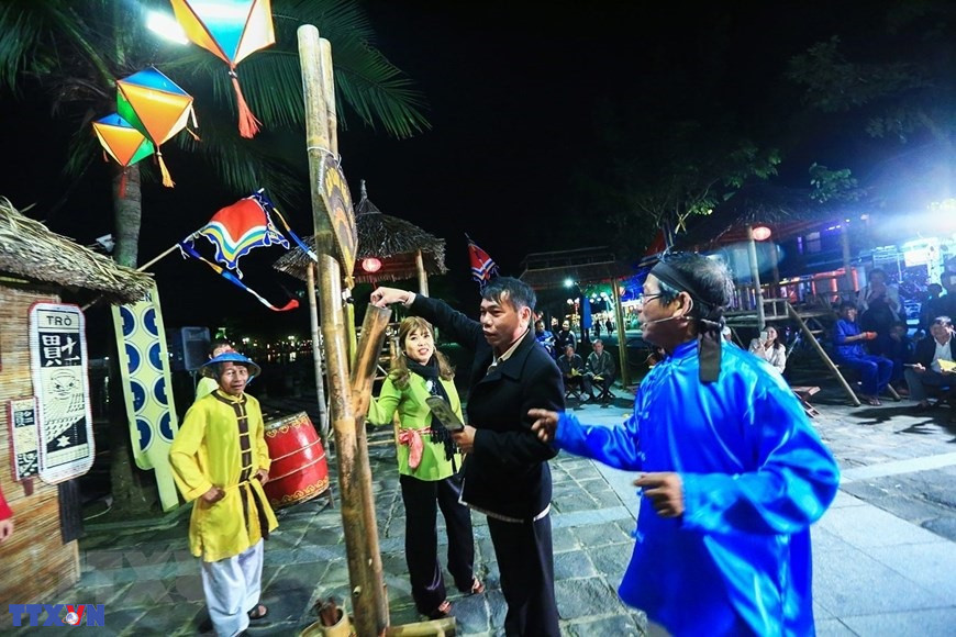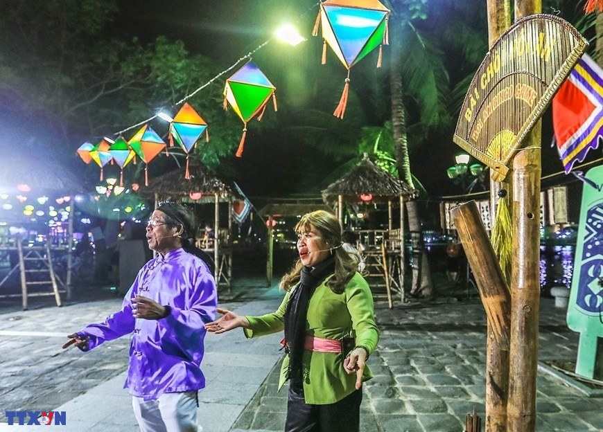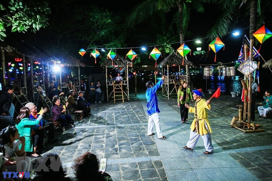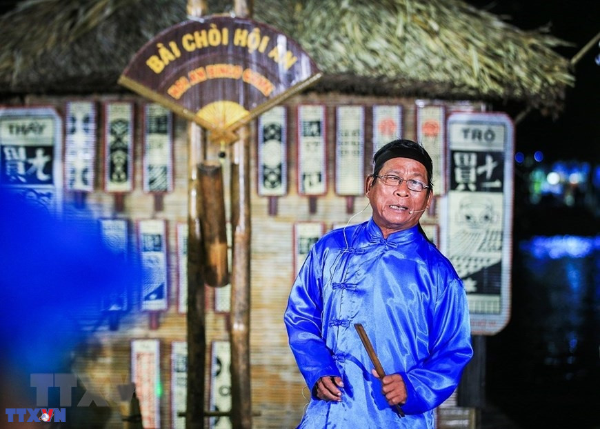 Những buổi biểu diễn nghệ thuật Bài Chòi luôn thu hút đông sự quan tâm của du khách nhất là các bạn trẻ khi tới du lịch phố cổ Hội An. (Ảnh: Trọng Đạt/TTXVN)