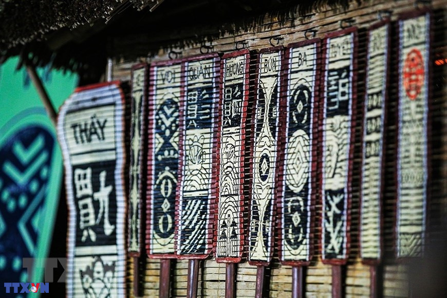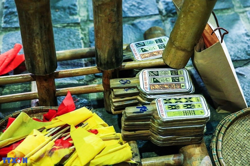 Những thẻ bài được phát cho người chơi để so sánh với thẻ bài được hô hát. (Ảnh: Trọng Đạt/TTXVN)