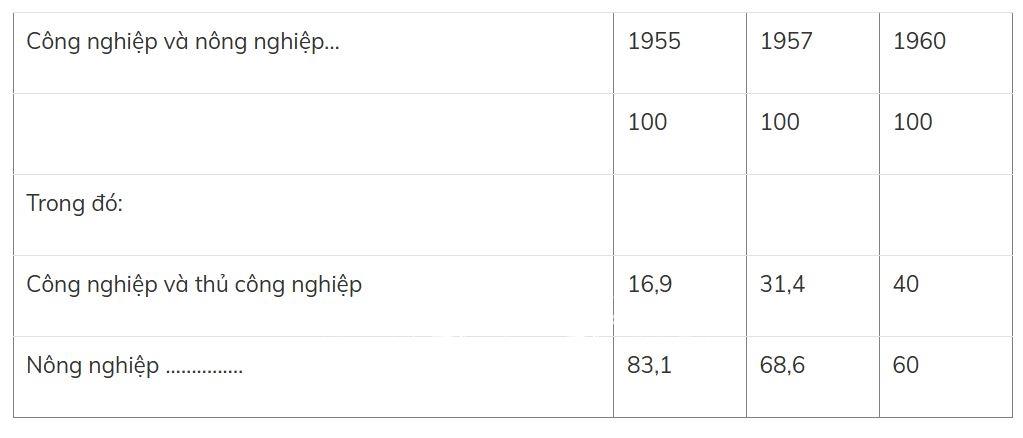 Theo những dự tính đã đề ra, đến nǎm 1965, trong giá trị tổng sản lượng công nghiệp và nông nghiệp, tỷ trọng của công nghiệp và thủ công nghiệp sẽ chiếm khoảng 51%, nông nghiệp sẽ chiếm khoảng 49%.