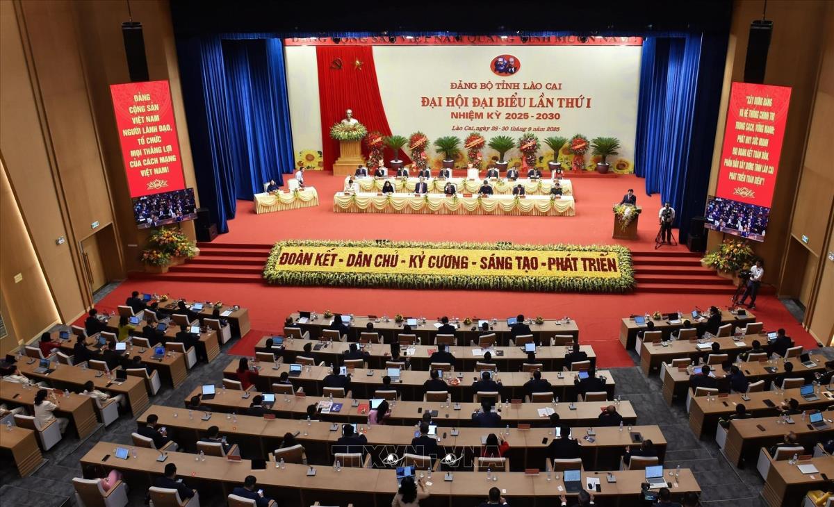 Quang cảnh phiên bế mạc Đại hội đại biểu Đảng bộ tỉnh Lào Cai lần thứ nhất (30/9/2025). Ảnh: Tuấn Khôi - TTXVN