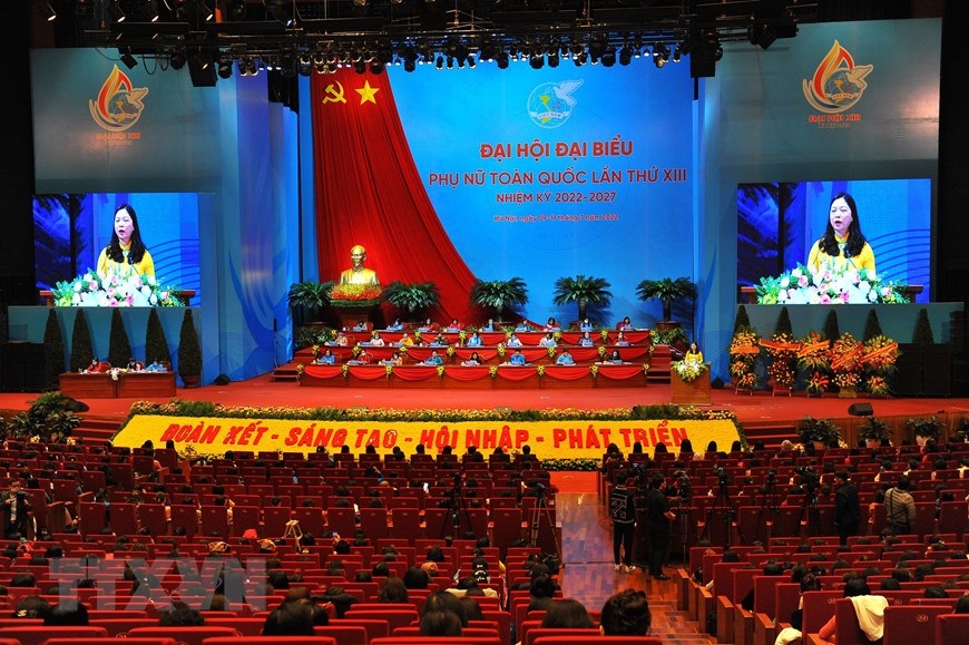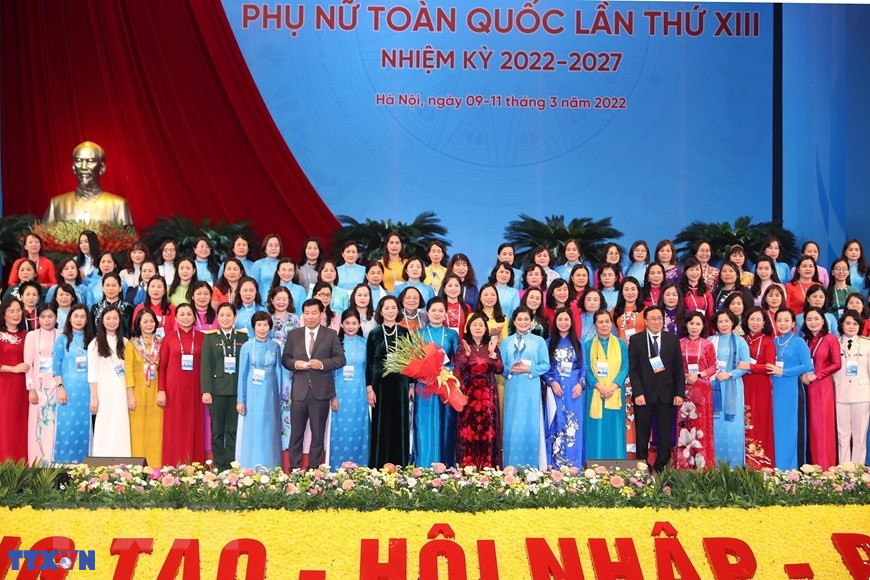 Hà Nội (TTXVN 11/3/2022) Đại hội phụ nữ toàn quốc lần thứ XIII (từ ngày 9/3 - 11/3/2022) đã thành công tốt đẹp với việc thông qua Điều lệ Hội Liên hiệp Phụ nữ Việt Nam (sửa đổi), Nghị quyết Đại hội, ra mắt Ban Chấp hành TW Hội Liên hiệp Phụ nữ Việt Nam.