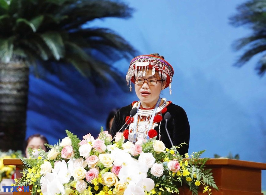 Đại biểu phụ nữ tỉnh Bắc Kạn Lý Thị Quyên tham luận tại Đại hội. (Ảnh: Phương Hoa/TTXVN)