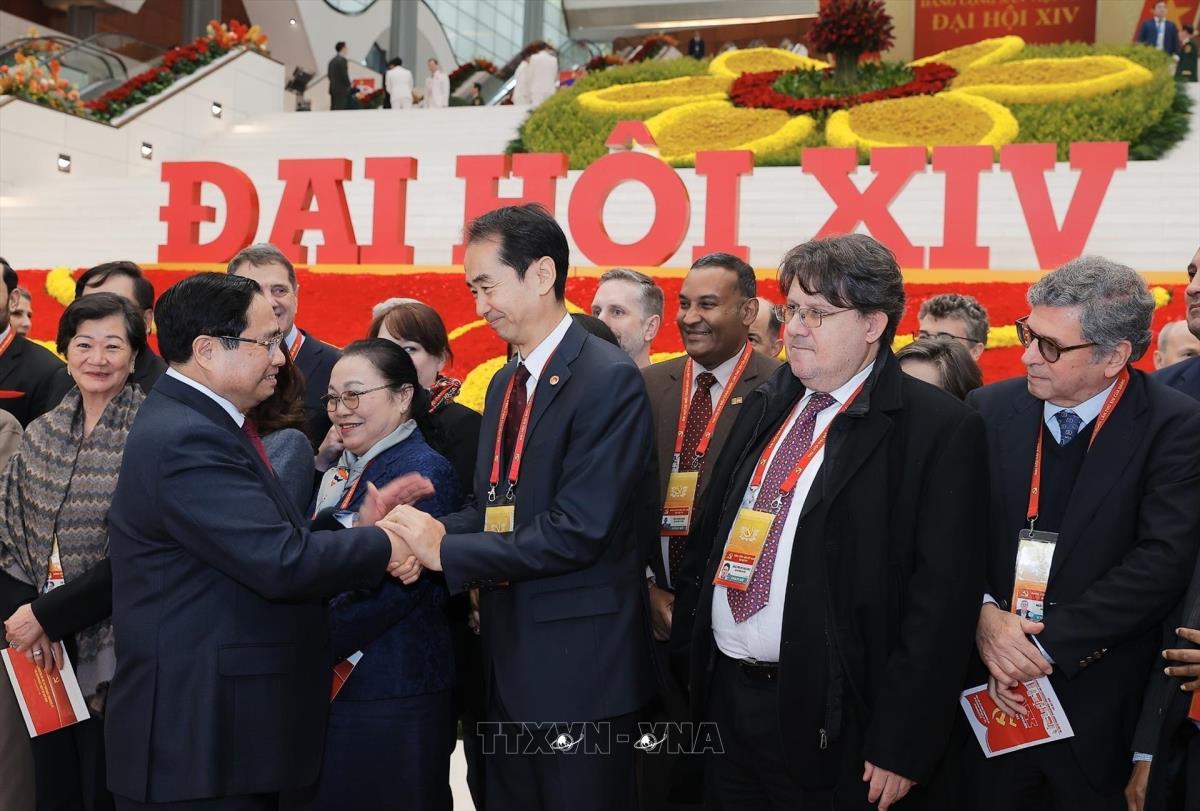 Thủ tướng Phạm Minh Chính với các đại biểu quốc tế tới dự phiên bế mạc Đại hội XIV của Đảng (23/1/2026). Ảnh: TTXVN