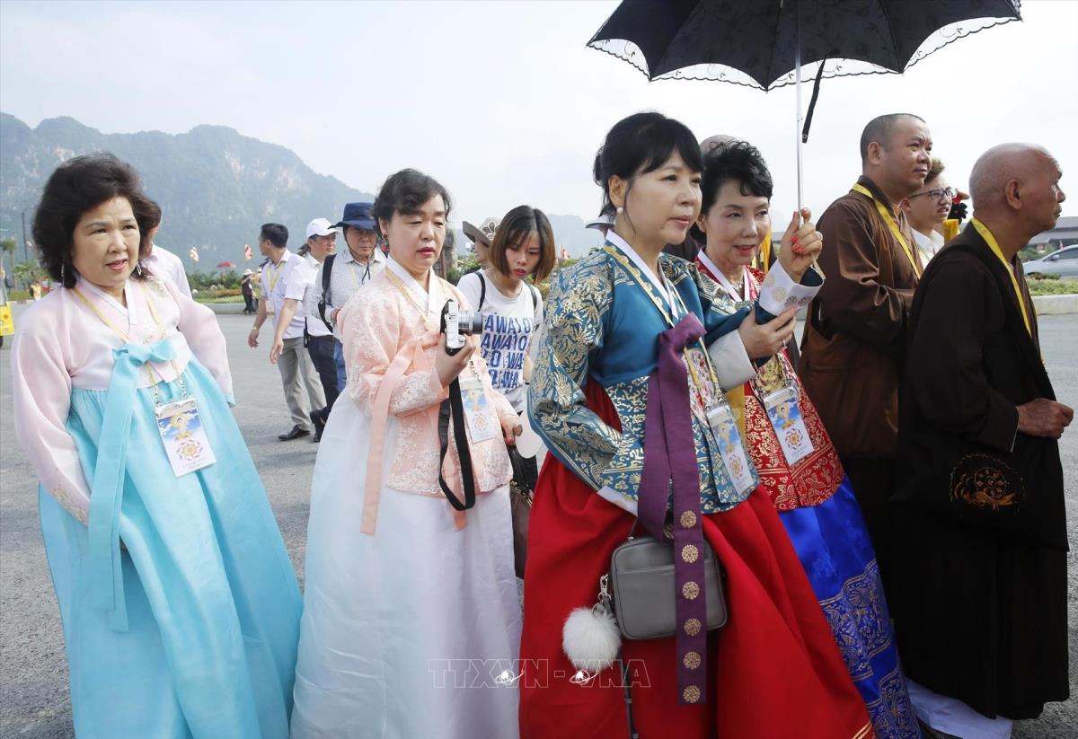 Các sư tăng, Phật giáo Hàn Quốc đến dự Lễ bế mạc Đại lễ Vesak Liên hợp quốc 2019. Ảnh: Lâm Khánh - TTXVN