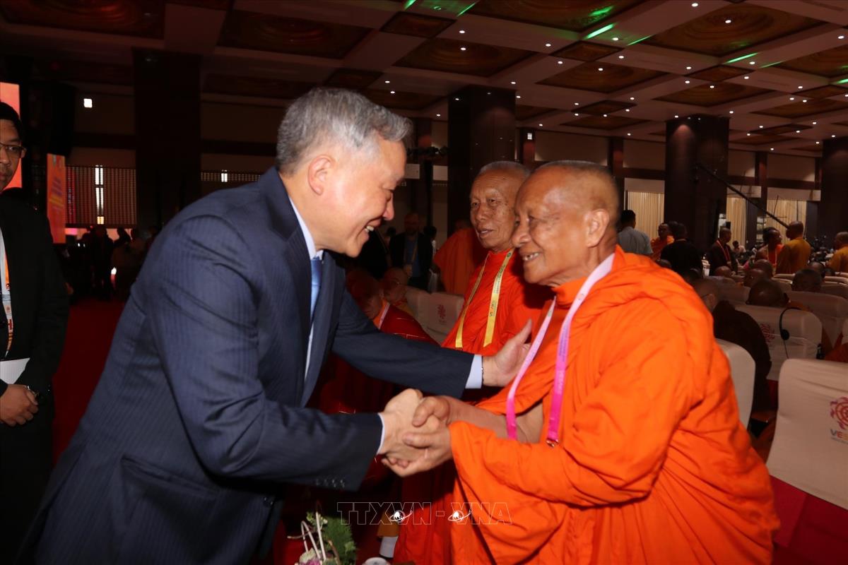 Phó Thủ tướng thường trực Chính phủ Nguyễn Hoà Bình gặp gỡ các đại biểu trong nước và quốc tế tham dự lễ bế mạc Đại lễ Phật đản Liên hợp quốc lần thứ 20 - Vesak 2025 (8/5/2025). Ảnh: Thanh Vũ-TTXVN