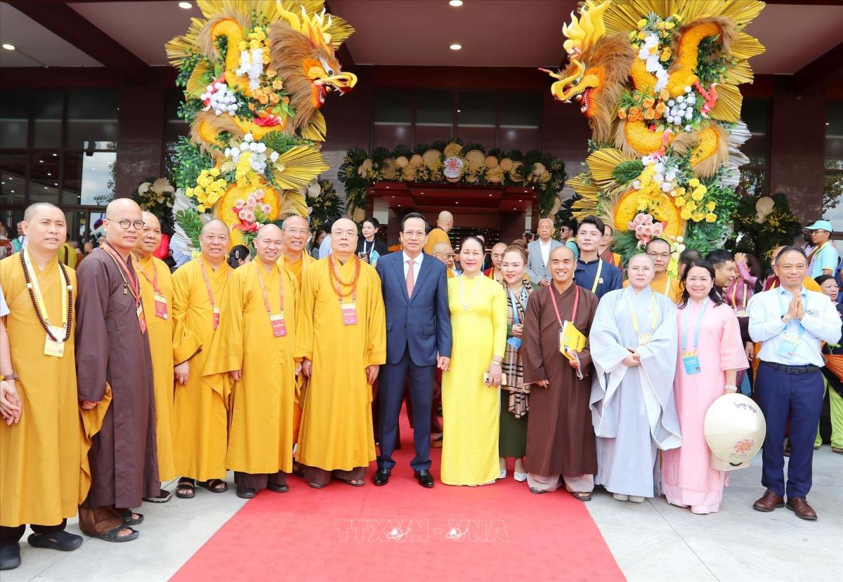 Bộ trưởng Bộ Dân tộc và Tôn giáo Đào Ngọc Dung với các đại biểu trong nước và quốc tế dự lễ bế mạc Đại lễ Vesak Liên hợp quốc 2025 (8/5/2025). Ảnh: Thanh Vũ-TTXVN