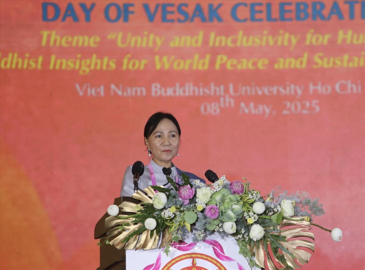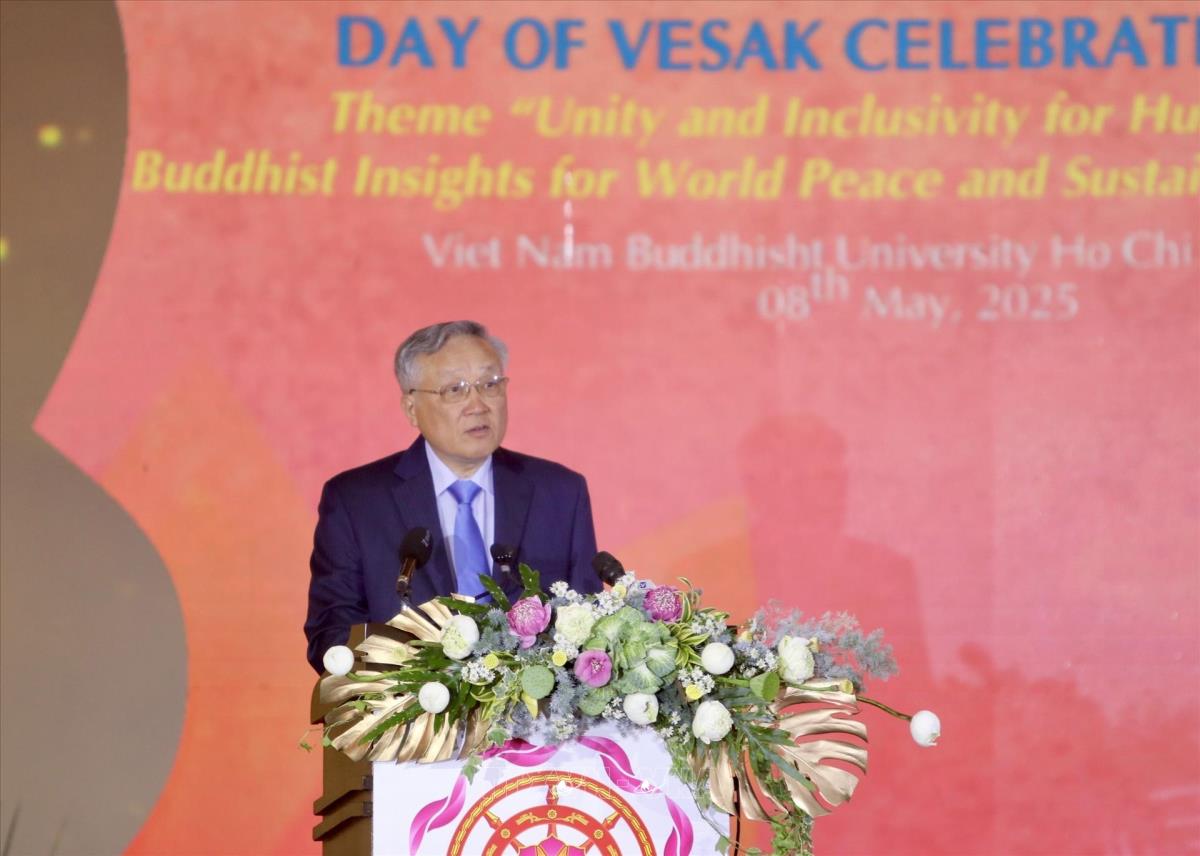 . Phó Thủ tướng thường trực Chính phủ Nguyễn Hoà Bình phát biểu tại lễ bế mạc Đại lễ Phật đản Liên hợp quốc lần thứ 20 - Vesak 2025 (8/5/2025). Ảnh: Thanh Vũ-TTXVN