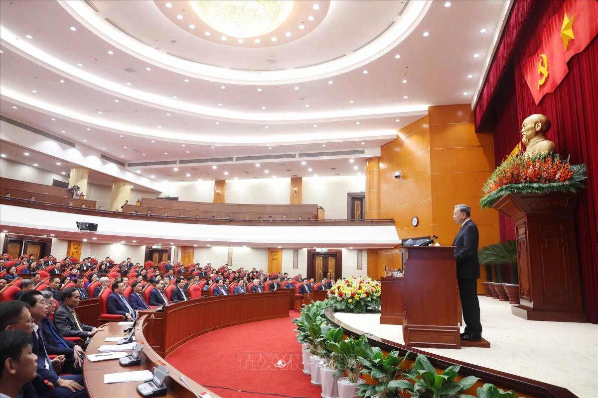Tổng Bí thư Tô Lâm phát biểu bế mạc Hội nghị Ban Chấp hành Trung ương Đảng khoá XIII (24/1/2025). Ảnh: Thống Nhất – TTXVN