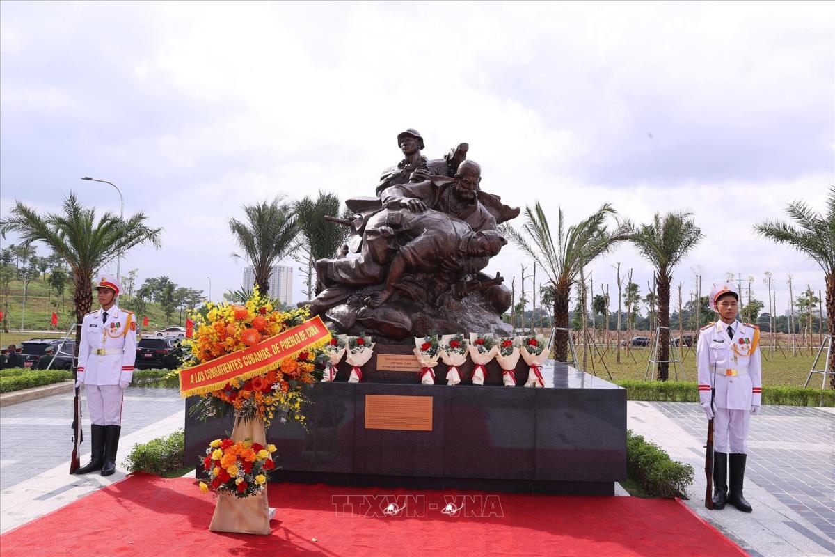 Cụm tượng tri ân các chuyên gia quân sự Cuba tại Bảo tàng Lịch sử Quân sự Việt Nam (31/8/2025). Ảnh: Văn Điệp – TTXVN