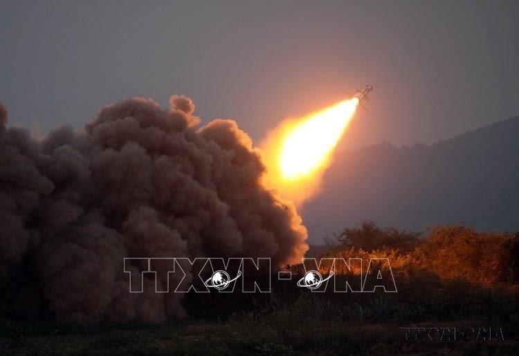 Tên lửa Spyder tiêu diệt mục tiêu ngay từ quả đạn đầu tại Diễn tập, bắn đạn thật năm 2022 do Quân chủng Phòng không - Không quân tổ chức (17/11/2022). Ảnh: Trọng Đức - TTXVN