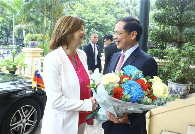 [Photo] Bộ trưởng Ngoại giao Bùi Thanh Sơn đón và hội đàm với PTT, BTNG và Các vấn đề châu Âu của Slovenia