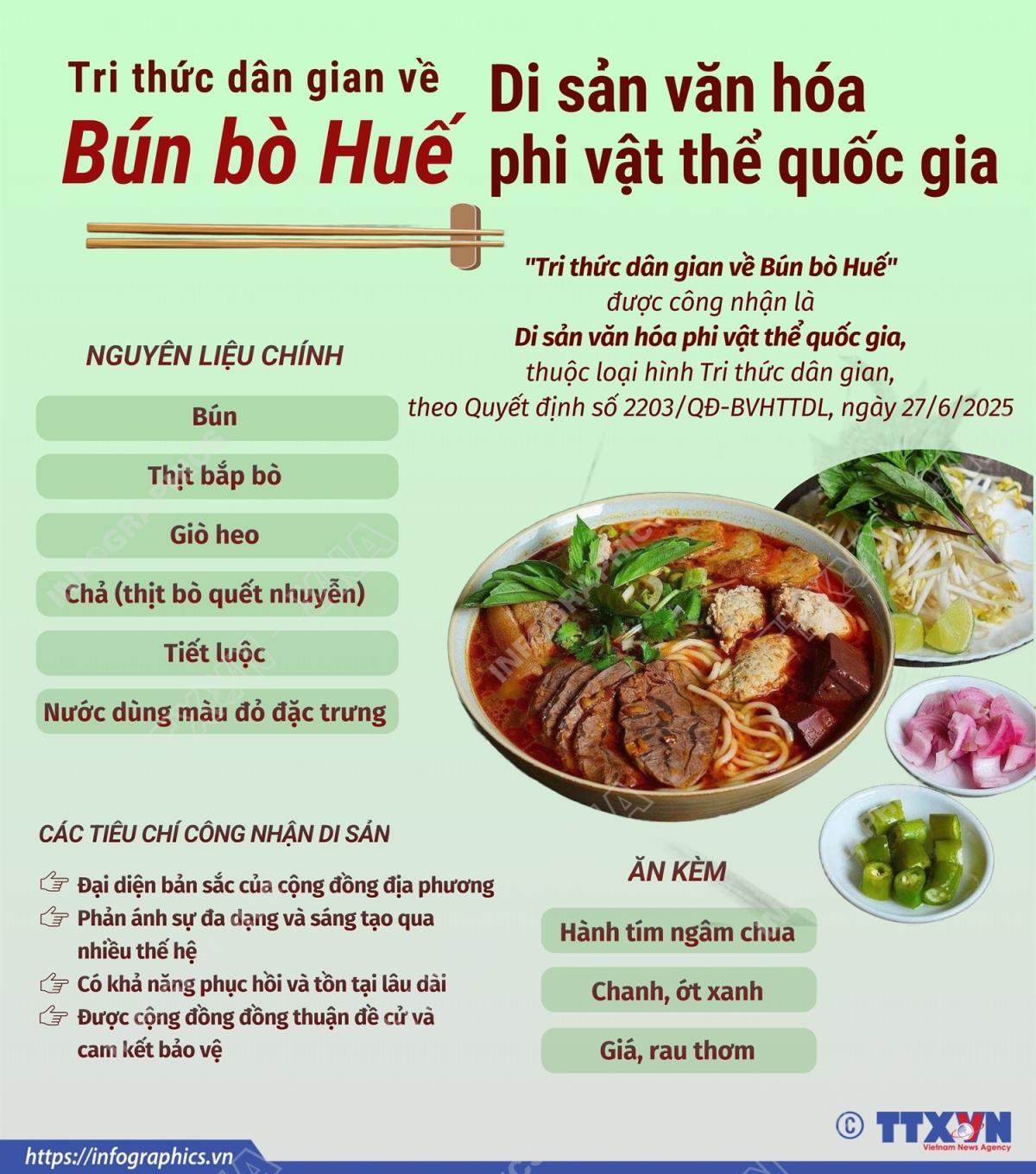 [Infographics] Bún bò Huế là Di sản văn hóa quốc gia