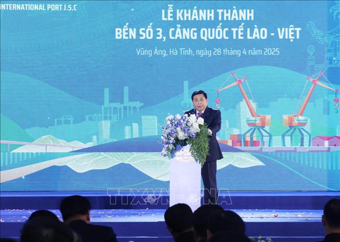 Hà Nội (TTXVN 28/4/2025) Chiều 28/4, Công ty Cổ phần Cảng quốc tế Lào - Việt tổ chức lễ khánh thành và đưa vào khai thác Bến số 3, Cảng quốc tế Lào - Việt tại khu kinh tế Vũng Áng, thị xã Kỳ Anh, Hà Tĩnh.