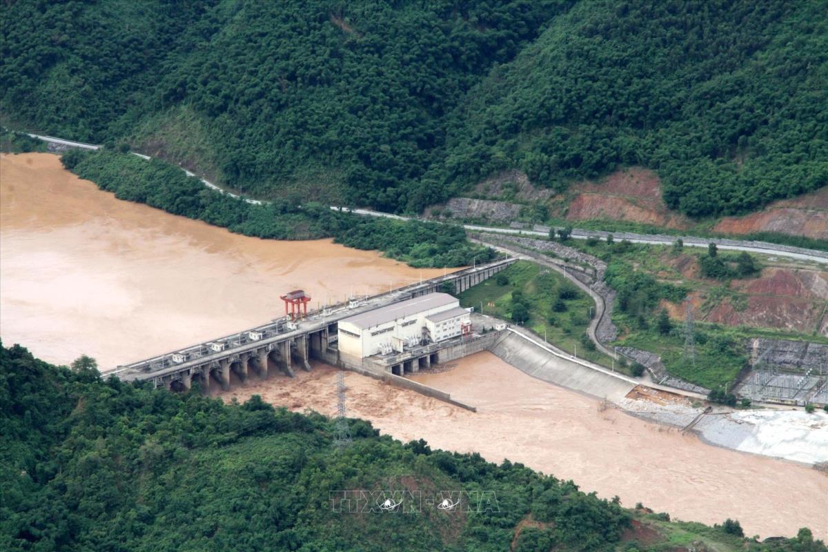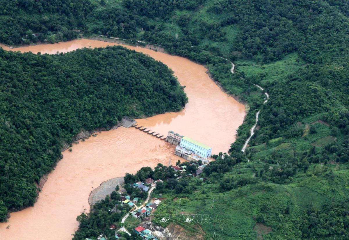 Nước lũ dâng cao tại khu vực nhà máy thủy điện trên sông Nậm Nơn (7/2025). Ảnh: Văn Tý-TTXVN