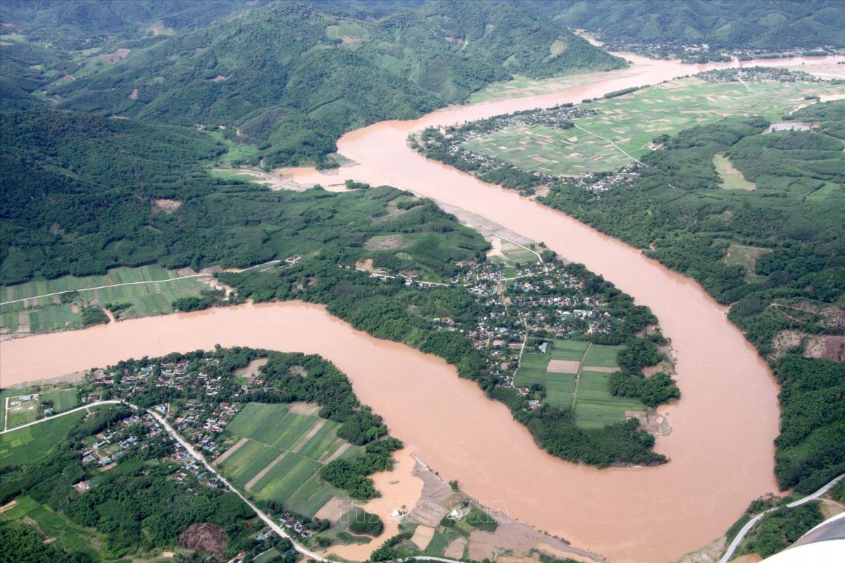 Nước lũ trên sông Nậm Mộ đoạn qua xã Mường Xén (Nghệ An) (7/2025). Ảnh: Văn Tý-TTXVN