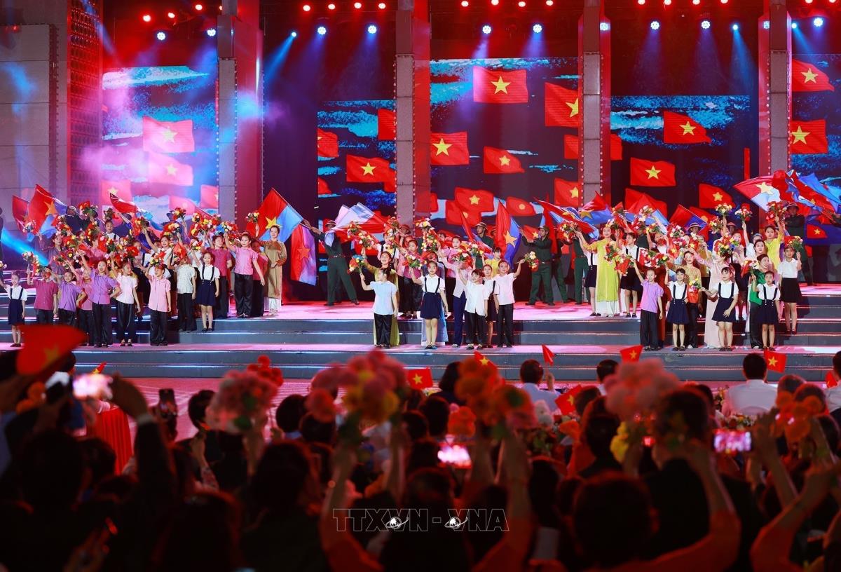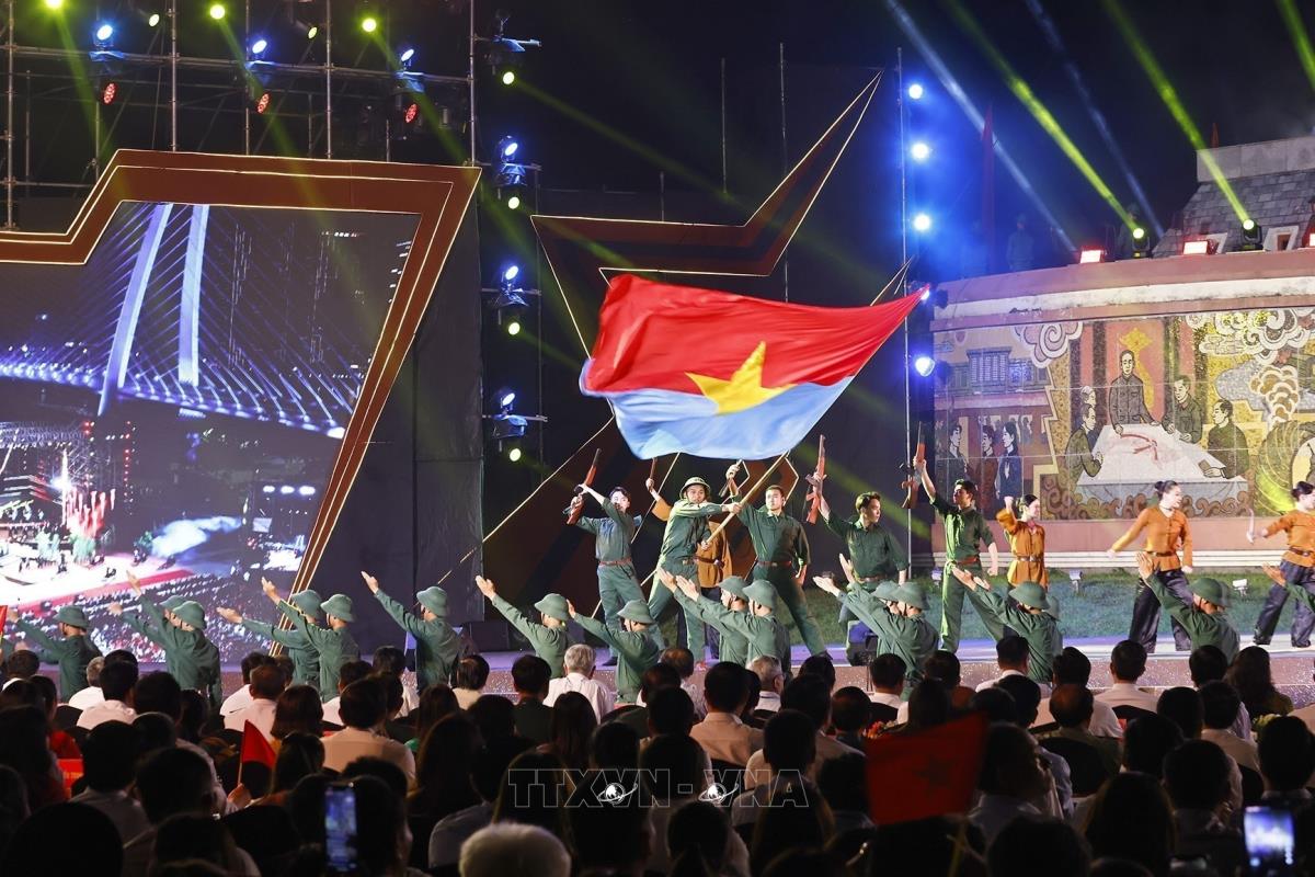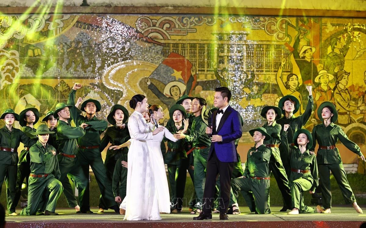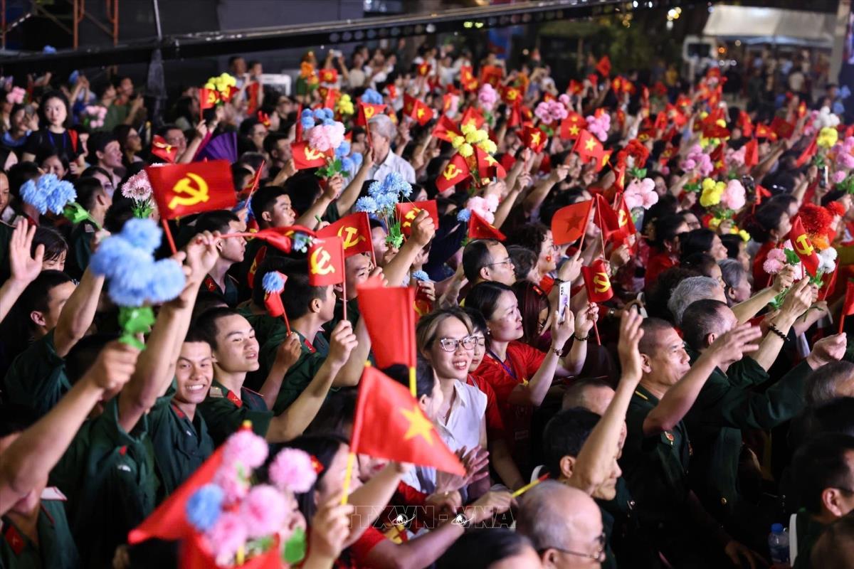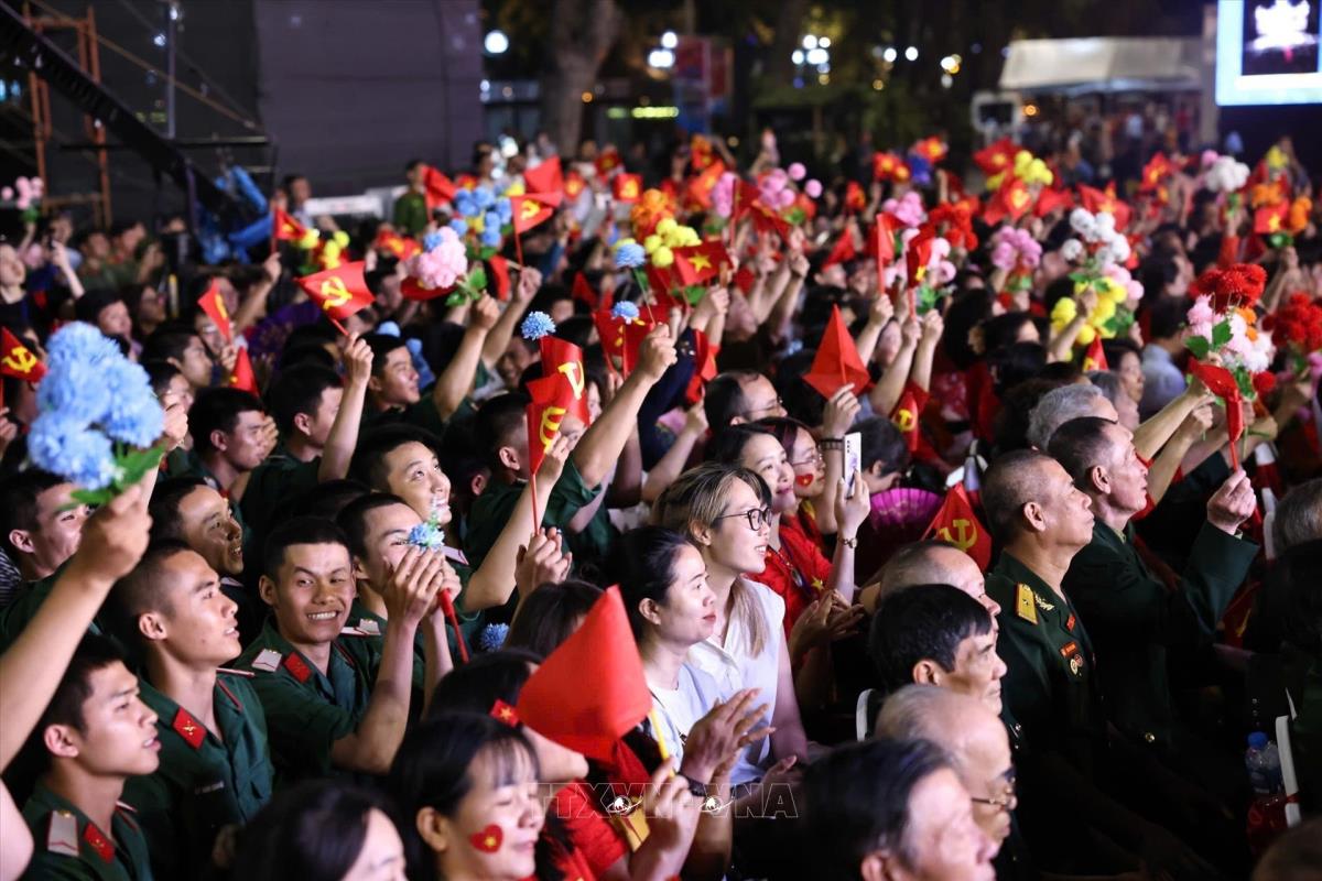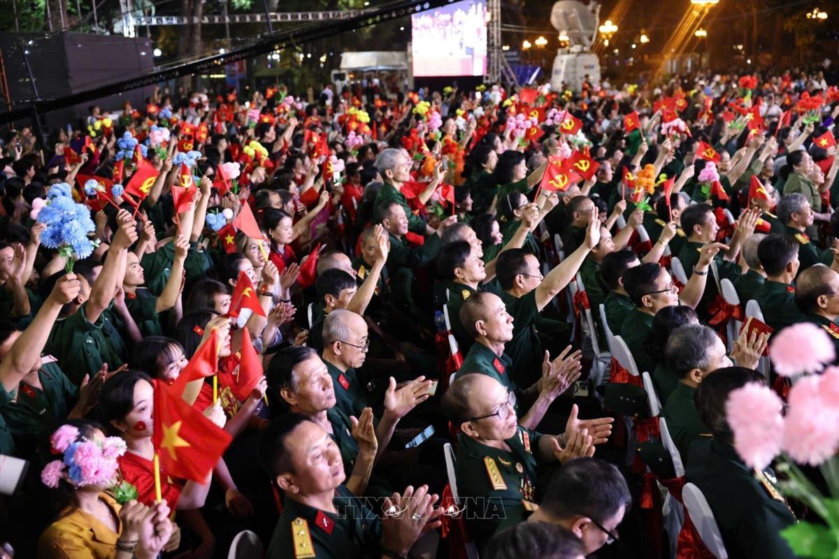 Chương trình nghệ thuật “Vang mãi khúc khải hoàn” tại điểm cầu Hà Nội (27/4/2025). Ảnh: Dương Giang-TTXVN