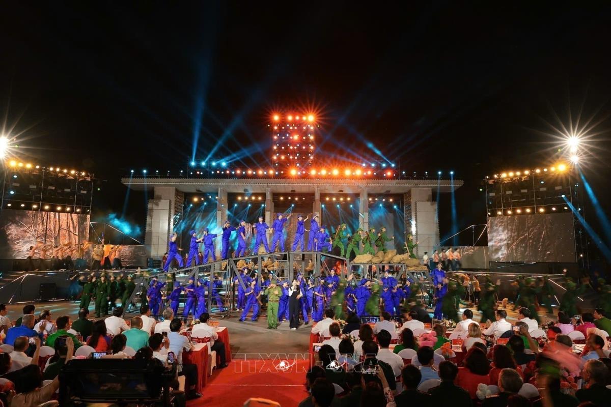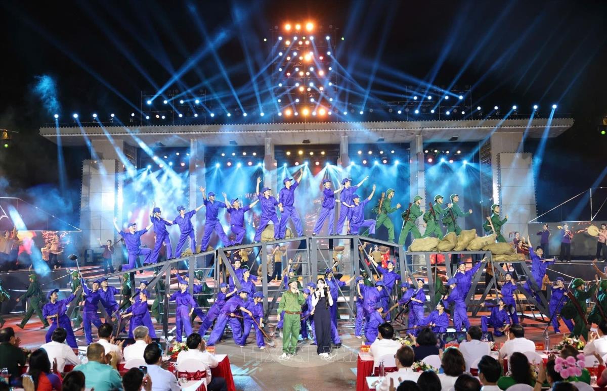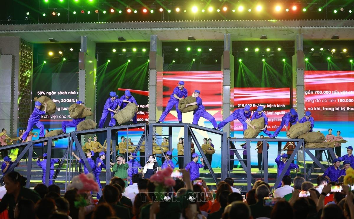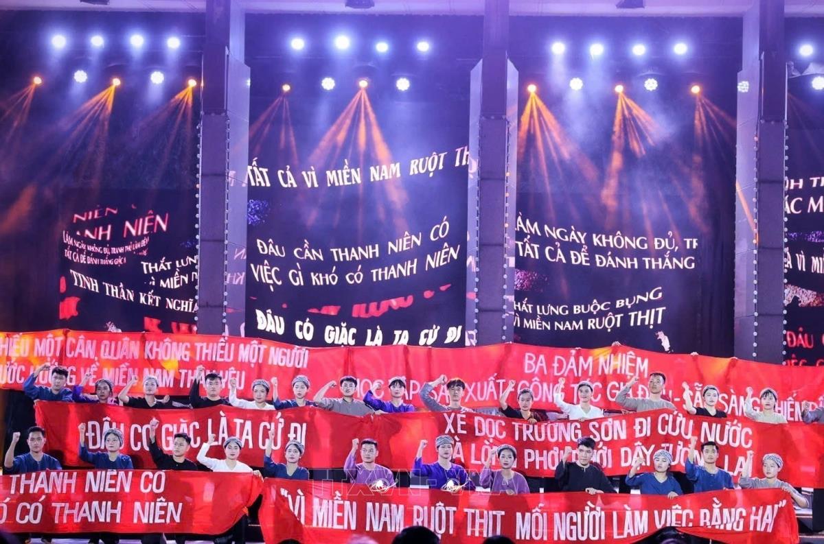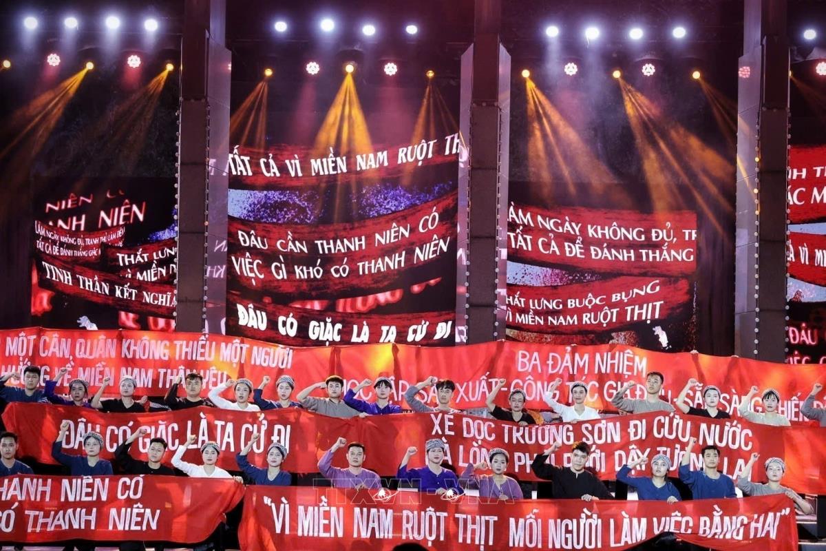 Tiết mục văn nghệ của chương trình tại điểm cầu tỉnh Quảng Trị (27/4/2025). Ảnh: Doãn Tấn - TTXVN