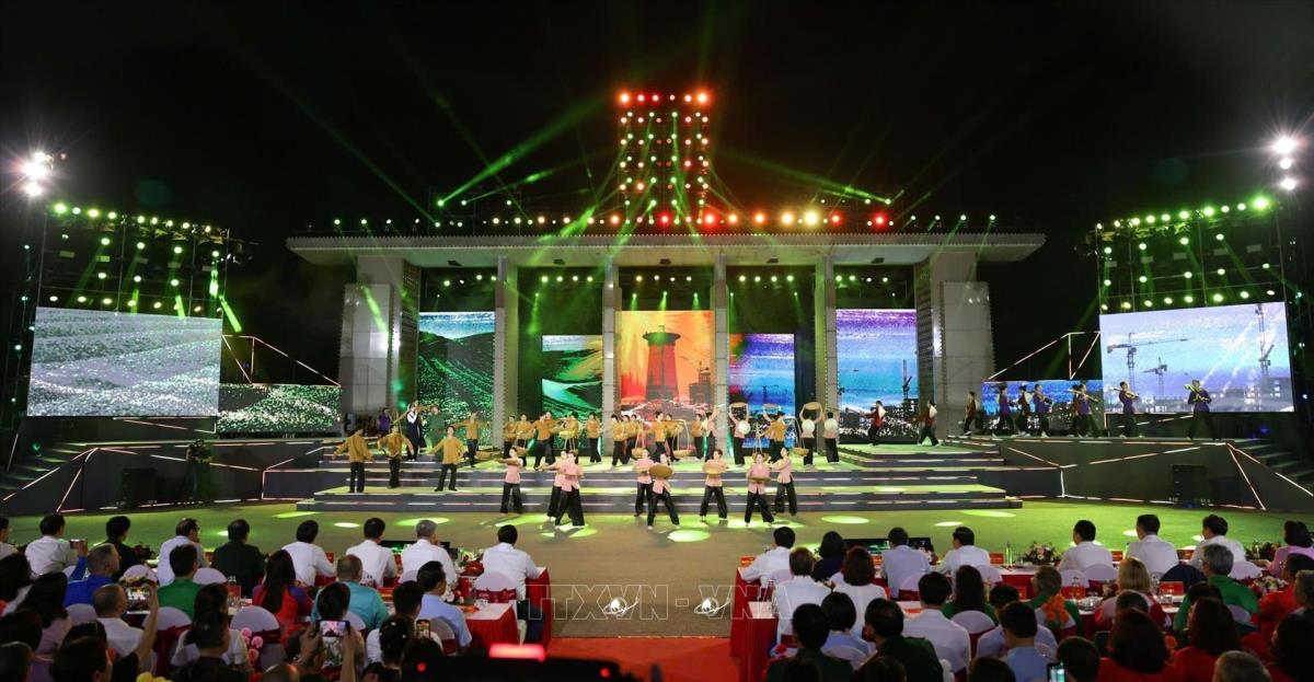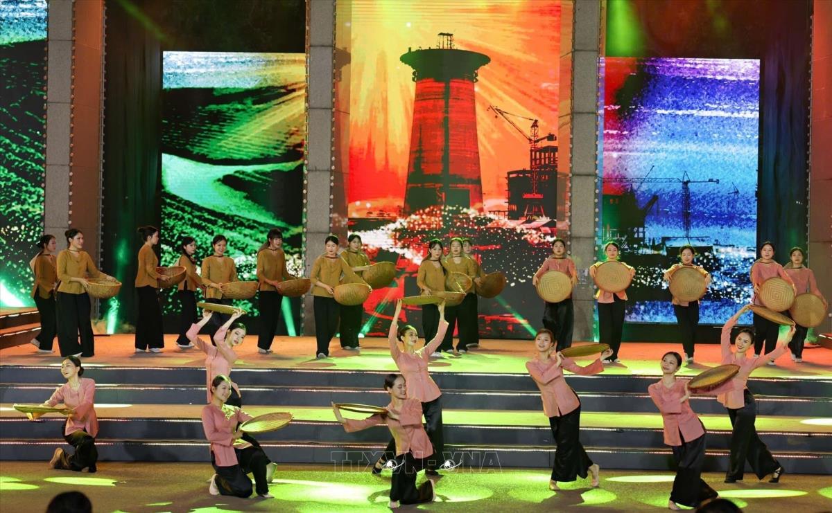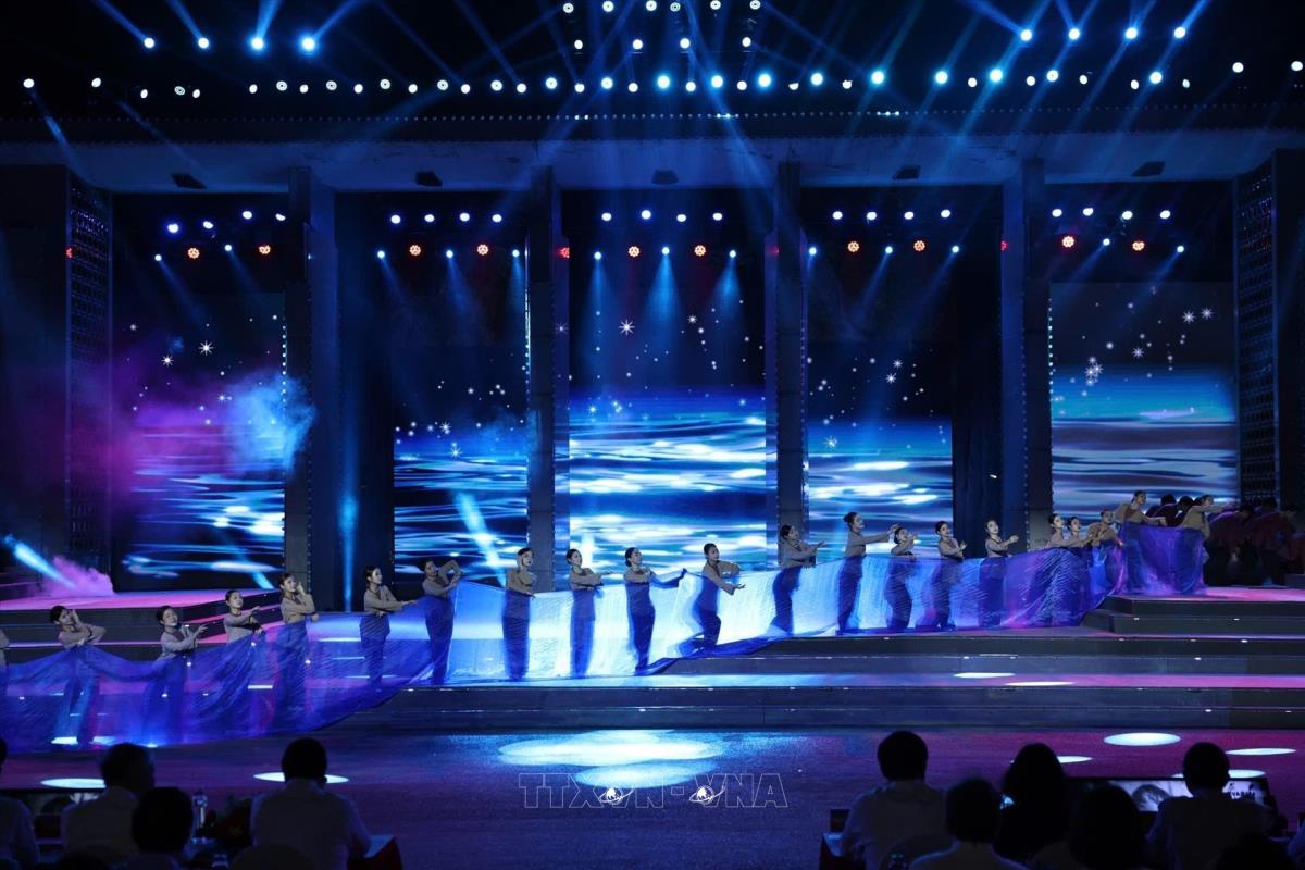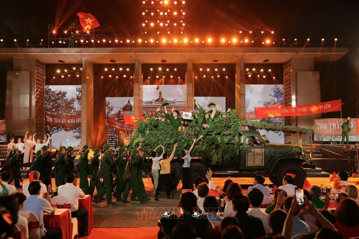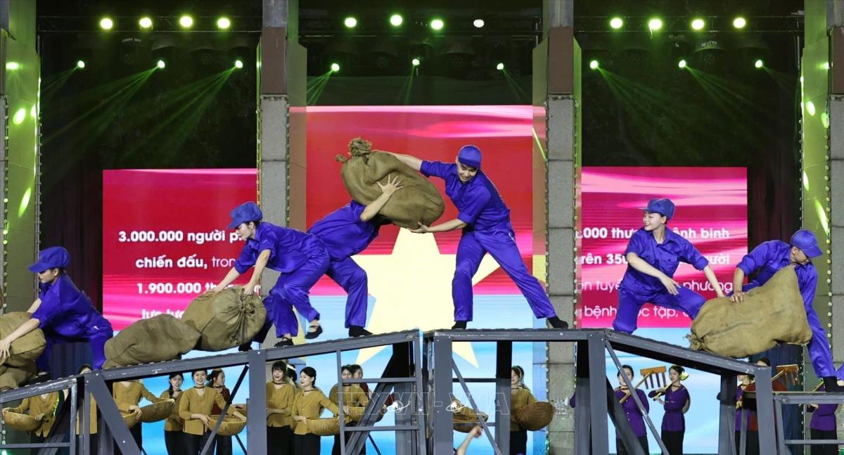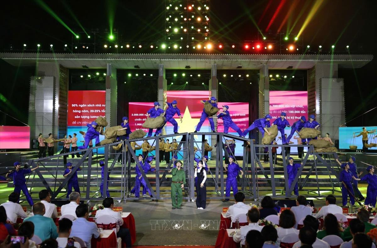 Tiết mục văn nghệ của chương trình tại điểm cầu tỉnh Quảng Trị (27/4/2025). Ảnh: Doãn Tấn - TTXVN