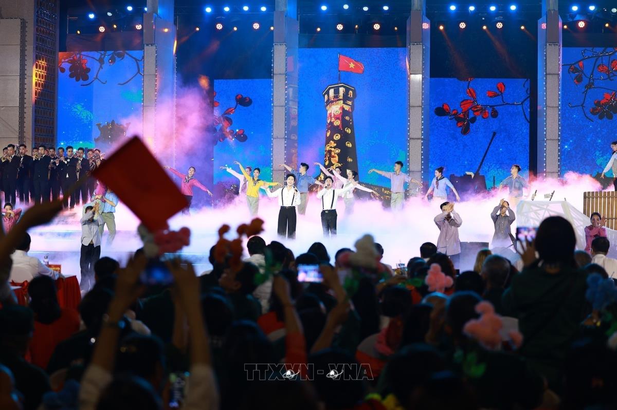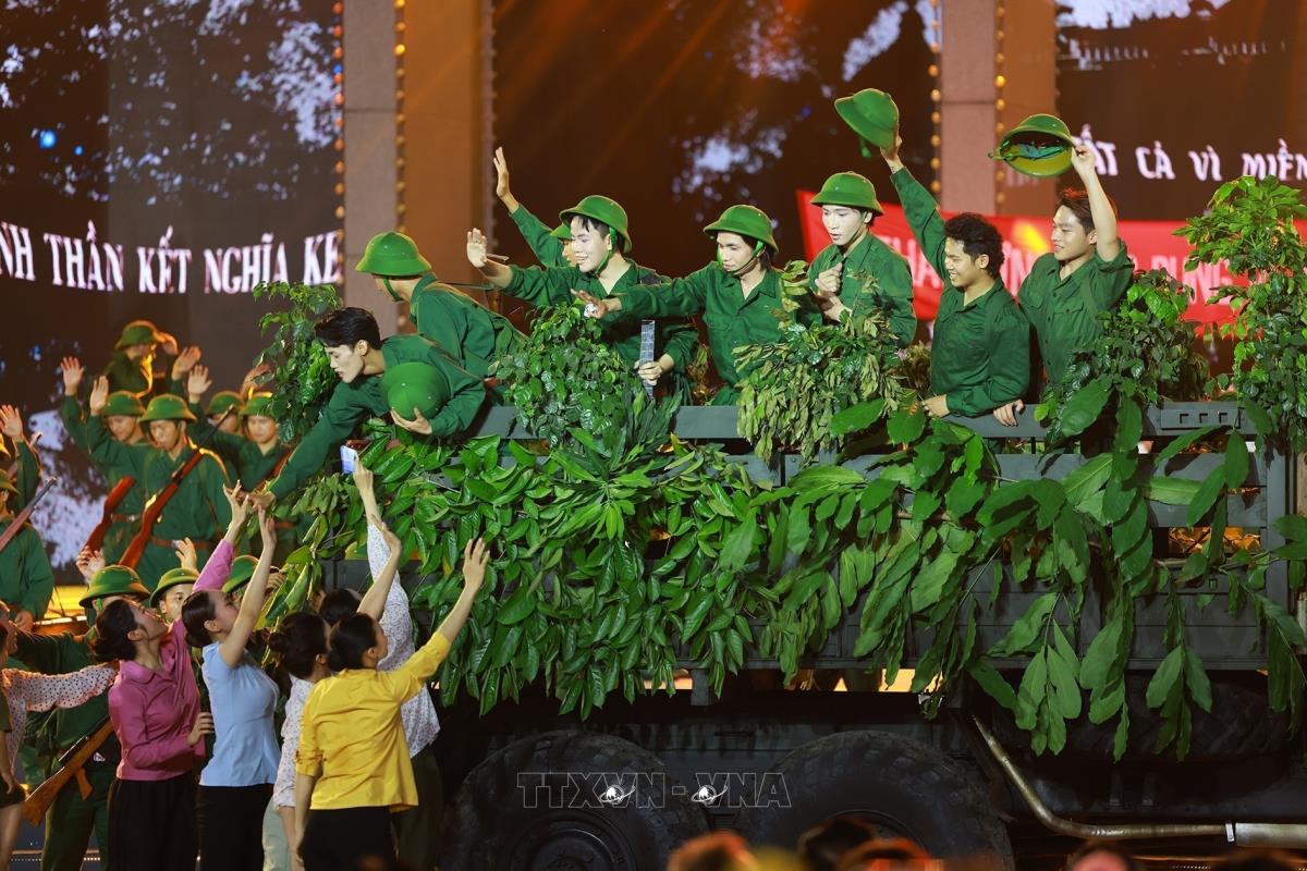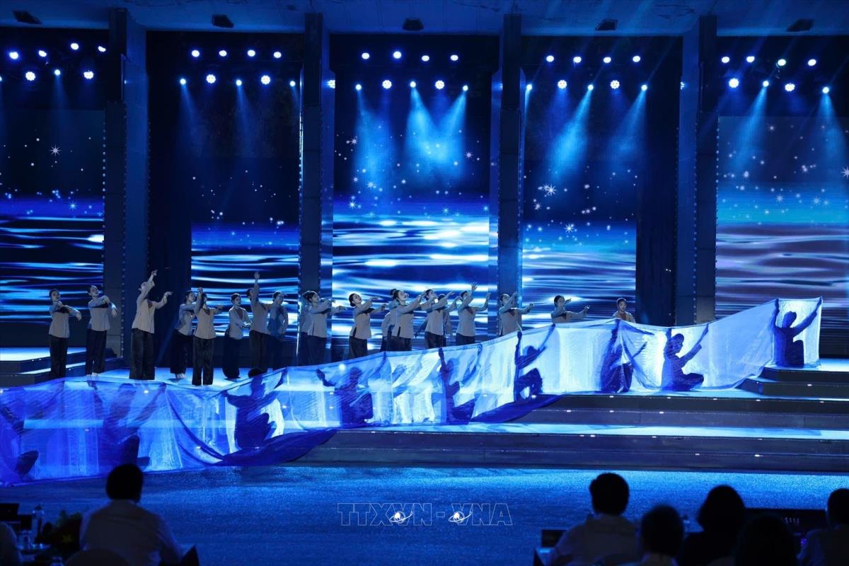 Các tiết mục nghệ thuật trong chương trình tại điểm cầu Hà Nội (27/4/2025). Ảnh: Thanh Tùng - TTXVN
