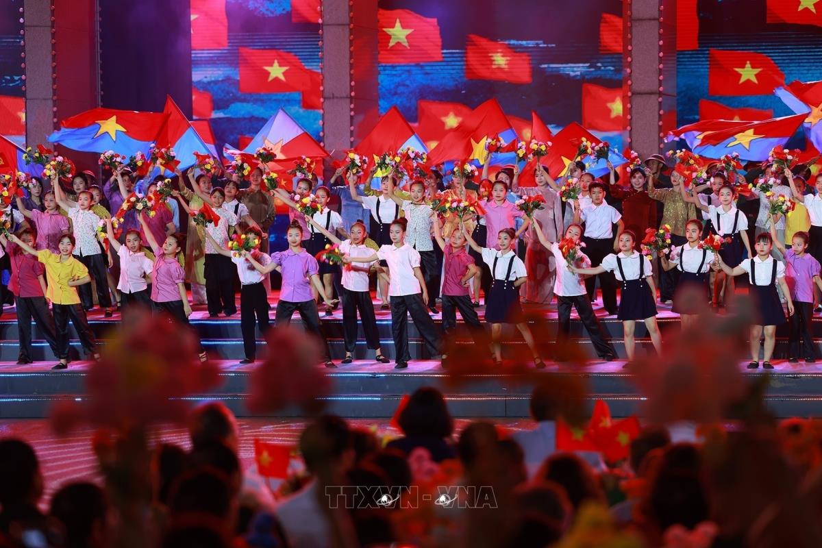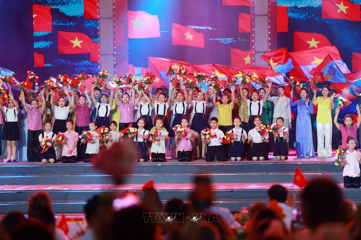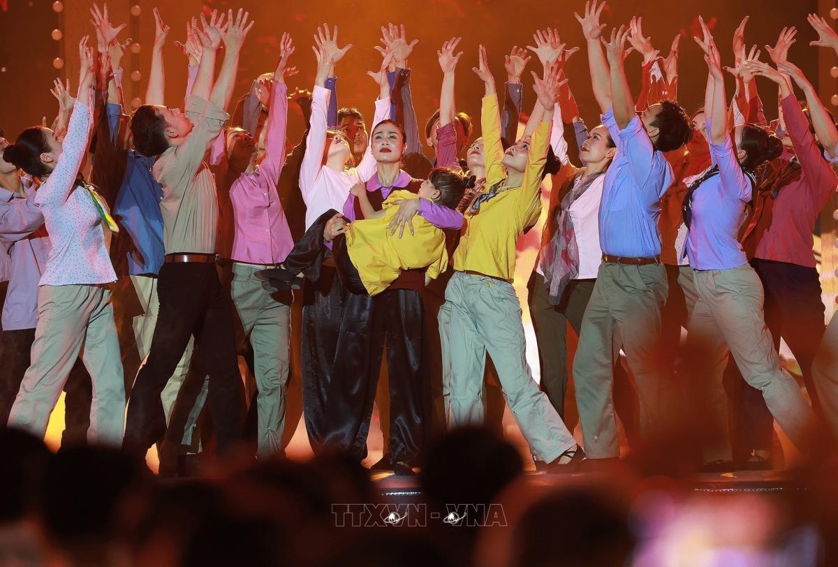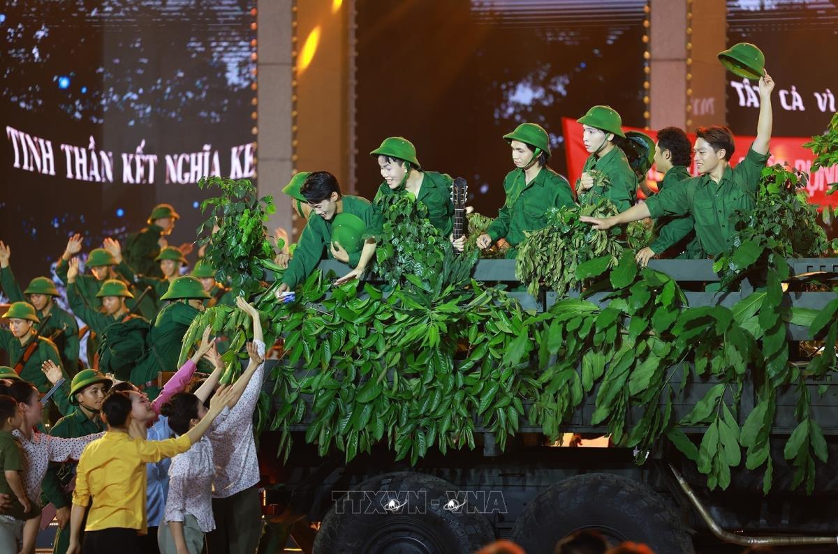 Các tiết mục nghệ thuật trong chương trình tại điểm cầu Hà Nội (27/4/2025). Ảnh: Thanh Tùng - TTXVN