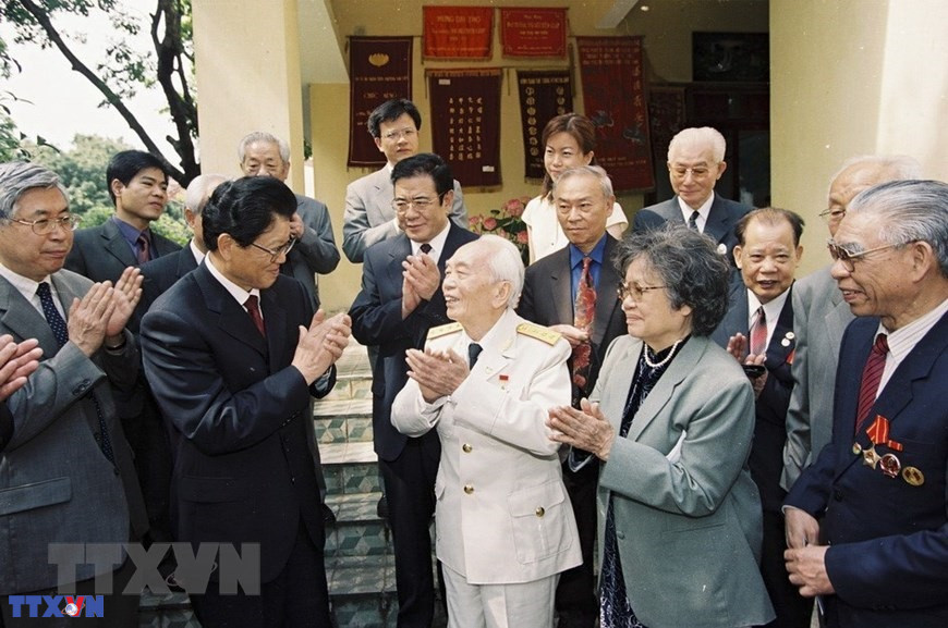 Ngày 6/5/2004, tại Hà Nội, Đại tướng Võ Nguyên Giáp tiếp thân mật đồng chí Lý Thiết Ánh, Phó Uỷ viên trưởng Ủy ban Thường vụ Đại hội Đại biểu nhân dân toàn quốc nước CHND Trung Hoa và các cựu cố vấn, chuyên gia Trung Quốc giúp Việt Nam trong thời kỳ kháng chiến chống Pháp, nhân dịp đoàn sang Việt Nam dự Lễ kỷ niệm 50 năm chiến thắng lịch sử Điện Biên Phủ. (Ảnh: TTXVN)