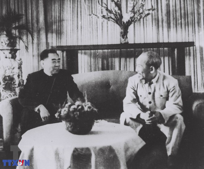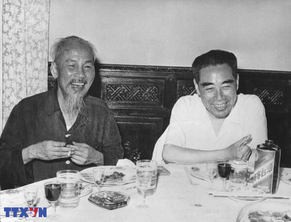 Chủ tịch Hồ Chí Minh tiếp Thủ tướng Trung Quốc Chu Ân Lai thăm Việt Nam, năm 1960. (Ảnh: Tư liệu/TTXVN phát)