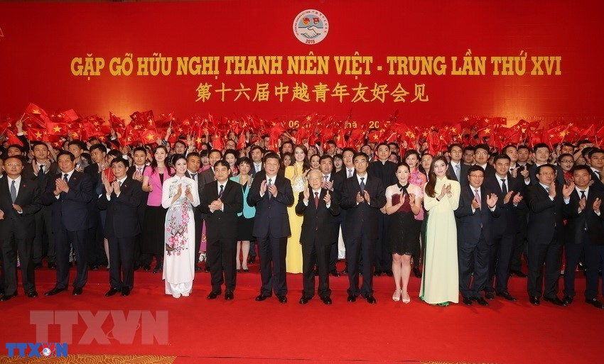 Sáng 6/11/2015, tại Hà Nội, Tổng Bí thư Nguyễn Phú Trọng và Tổng Bí thư, Chủ tịch Trung Quốc Tập Cận Bình dự gặp gỡ hữu nghị thanh niên Việt-Trung lần thứ XVI. (Ảnh: Trí Dũng/TTXVN)