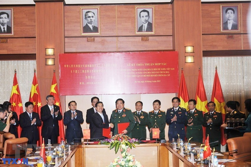 Bộ trưởng Quốc phòng Phùng Quang Thanh và Bộ trưởng Công an Trung Quốc Quách Thanh Côn ký Thỏa thuận hợp tác giữa hai bên, chiều 16/4/2015, tại Hà Nội. (Ảnh: Trọng Đức/TTXVN)
