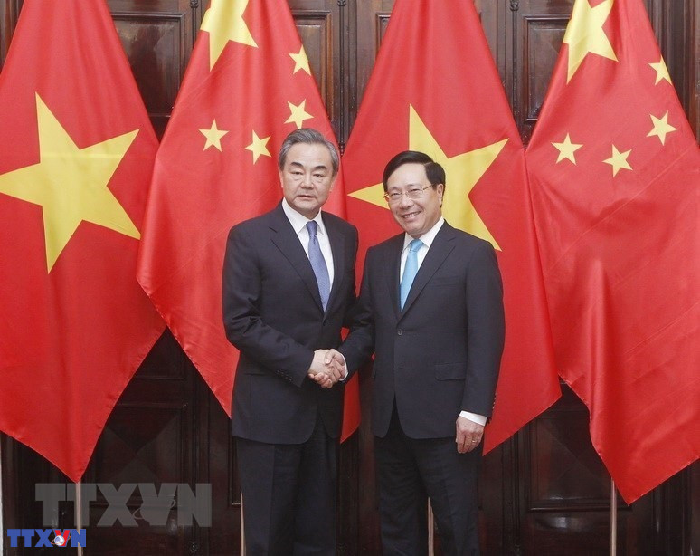 Chiều 1/4/2018, tại Hà Nội, Phó Thủ tướng, Bộ trưởng Ngoại giao Phạm Bình Minh hội đàm với Ủy viên Quốc vụ, Bộ trưởng Bộ Ngoại giao Trung Quốc Vương Nghị thăm chính thức Việt Nam. (Ảnh: Lâm Khánh/TTXVN)