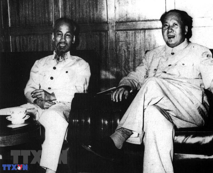 Chủ tịch Hồ Chí Minh gặp và hội đàm với Chủ tịch Mao Trạch Đông, ngày 2/11/1960 tại Bắc Kinh, trong chuyến thăm Trung Quốc từ ngày 2-4/11/1960. (Ảnh: TTXVN)