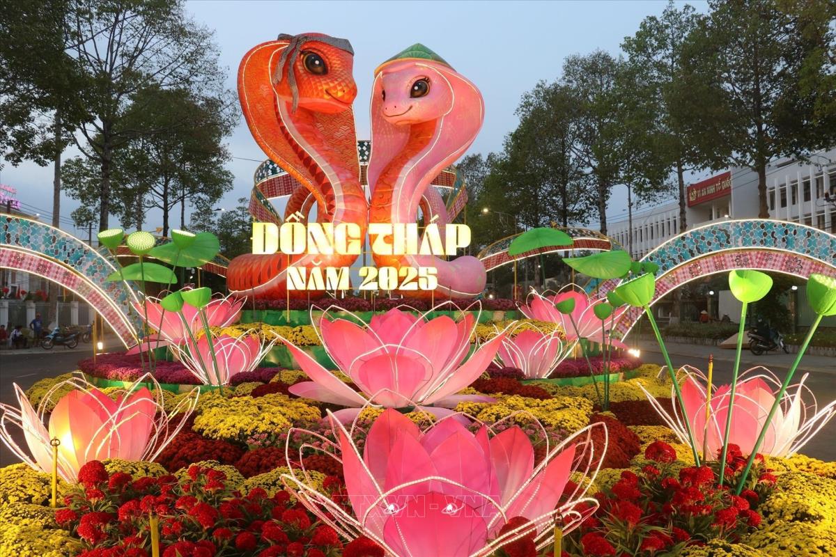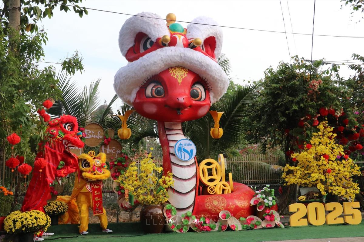 Linh vật rắn tại Đường hoa Xuân Tết Ất Tỵ 2025 thành phố Cao Lãnh ( Đồng Tháp). Ảnh : Nguyễn Văn Trí - TTXVN