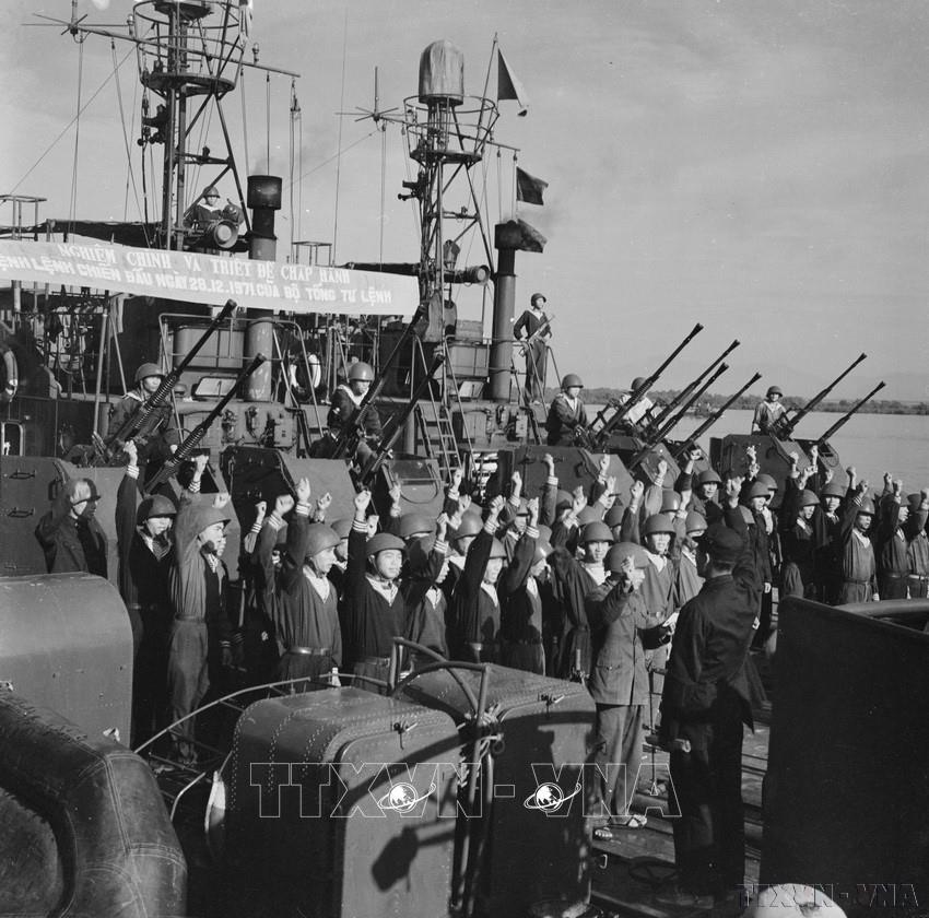 Chiến sĩ phân đội 7 Hải quân (đơn vị anh hùng) quyết tâm hoàn thành xuất sắc mọi nhiệm vụ (1972). Ảnh: Bảo Hanh - TTXVN