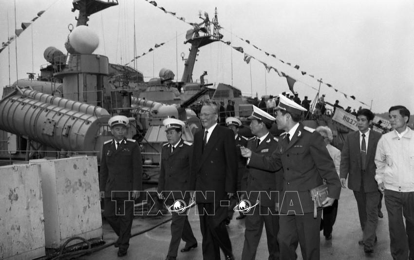 Chủ tịch nước Lê Đức Anh thăm cán bộ, chiến sĩ Hải quân vùng 3, ngày 9/1/1996. Ảnh: Cao Phong – TTXVN