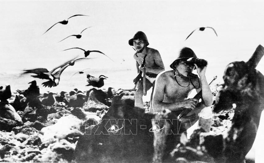 Giải phóng quần đảo Trường Sa - chiến công mang tính chiến lược trong giải phóng miền Nam, thống nhất đất nước. Trong ảnh: Lực lượng Đặc công hải quân Đoàn 126 giải phóng đảo Sinh Tồn thuộc quần đảo Trường Sa, ngày 28/4/1975. Ảnh: TTXVN phát