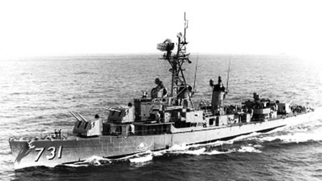 Chiến thắng trận đầu ngày 2 và 5 tháng 8 năm 1964 - khi ba tàu phóng lôi nhỏ bé dũng cảm tấn công tàu khu trục Maddox là khúc dạo đầu bi hùng của Hải quân. Đây là trận đánh mở màn cho tinh thần “dám đánh, biết đánh và quyết đánh thắng”, trở thành kim chỉ nam cho mọi hành động sau này của Hải quân Nhân dân Việt Nam. Trong ảnh: Tàu khu trục Maddox (DD-731) của Mỹ xâm phạm vùng biển của Việt Nam ngày 2/8/1964. Ảnh: Tư liệu quốc tế/TTXVN phát