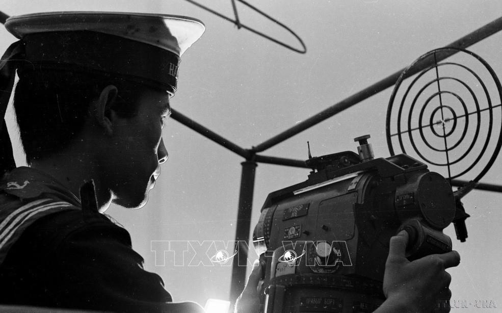 Chiến sĩ trường kỹ thuật 1 Hải quân phát huy tinh thần làm chủ tập thể, thực hiện làm chủ kỹ thuật, đúng chức trách, đúng phong cách. kết quả thực hành 100% khá và giỏi (1977). Ảnh: Xuân Tùng - TTXVn
