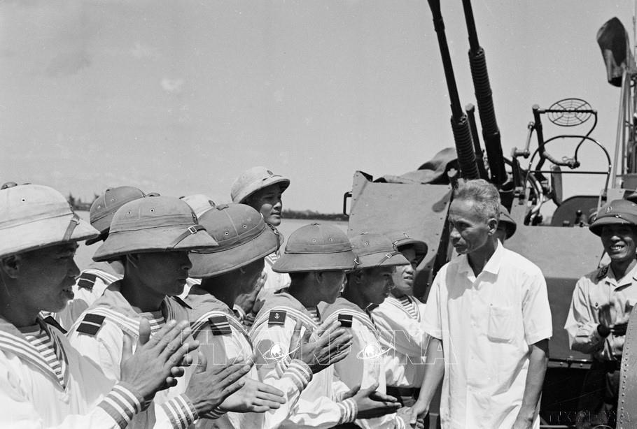 Chủ tịch Hồ Chí Minh thăm bộ đội hải quân (1965). Ảnh: TTXVN